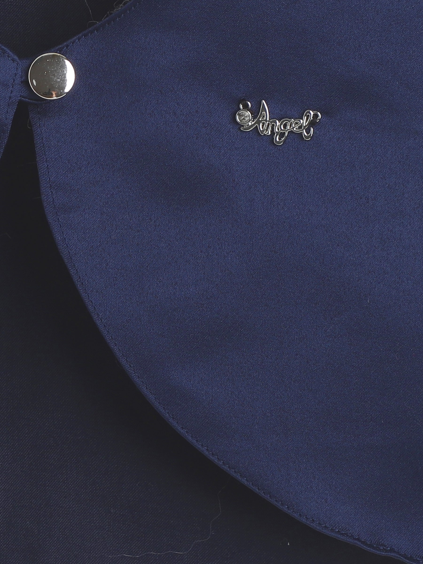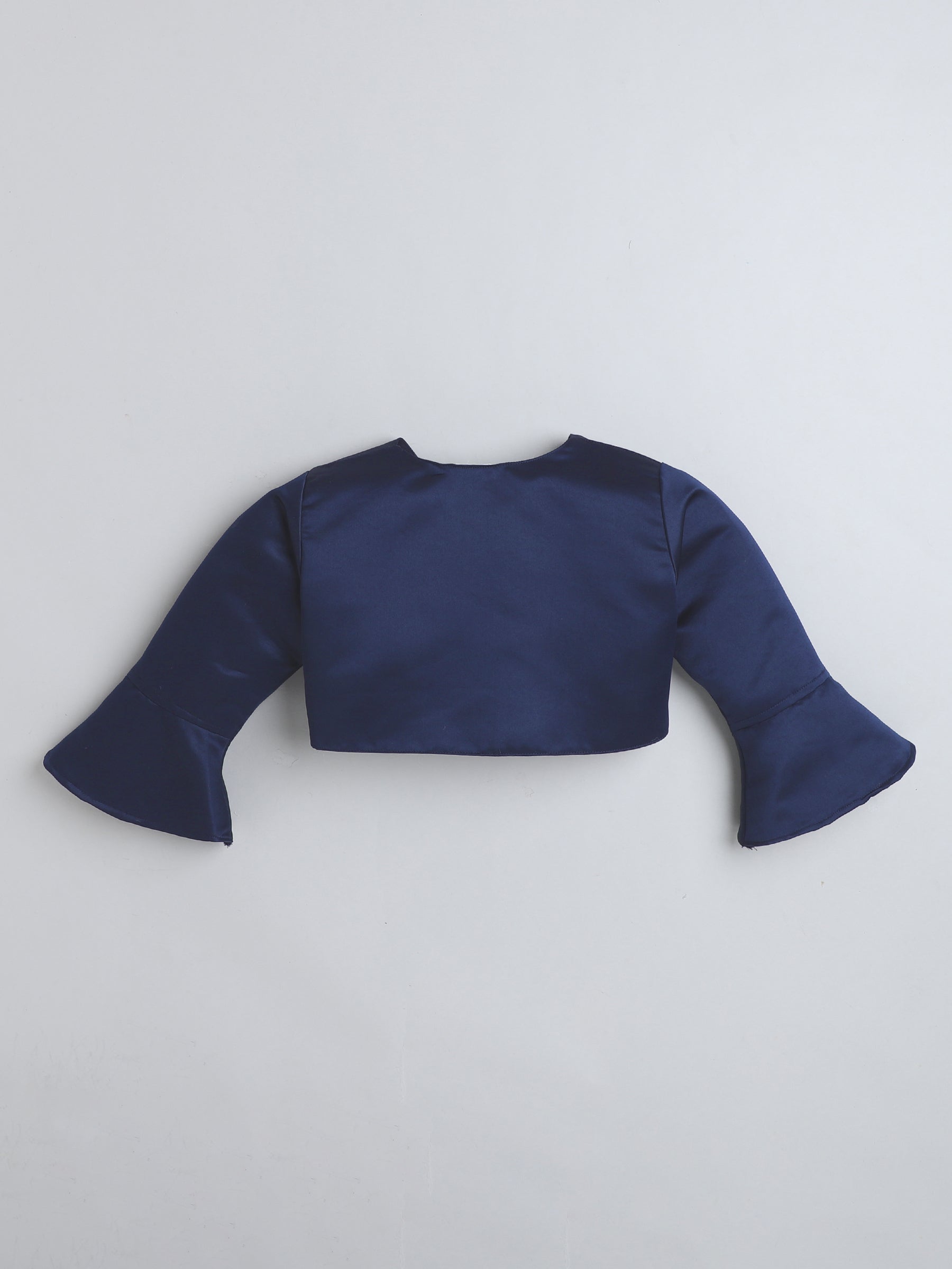 The Magic Wand Satin Three Fourth Sleeves Solid Bolero Shrug With Brooch Navy Blue