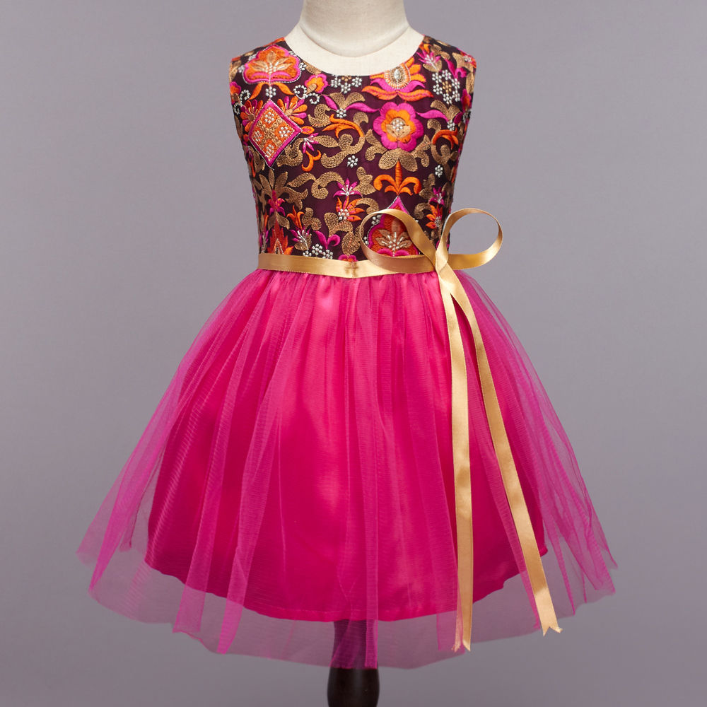 The Magic Wand Sleeveless Floral Embroidered Dress - Fuchsia