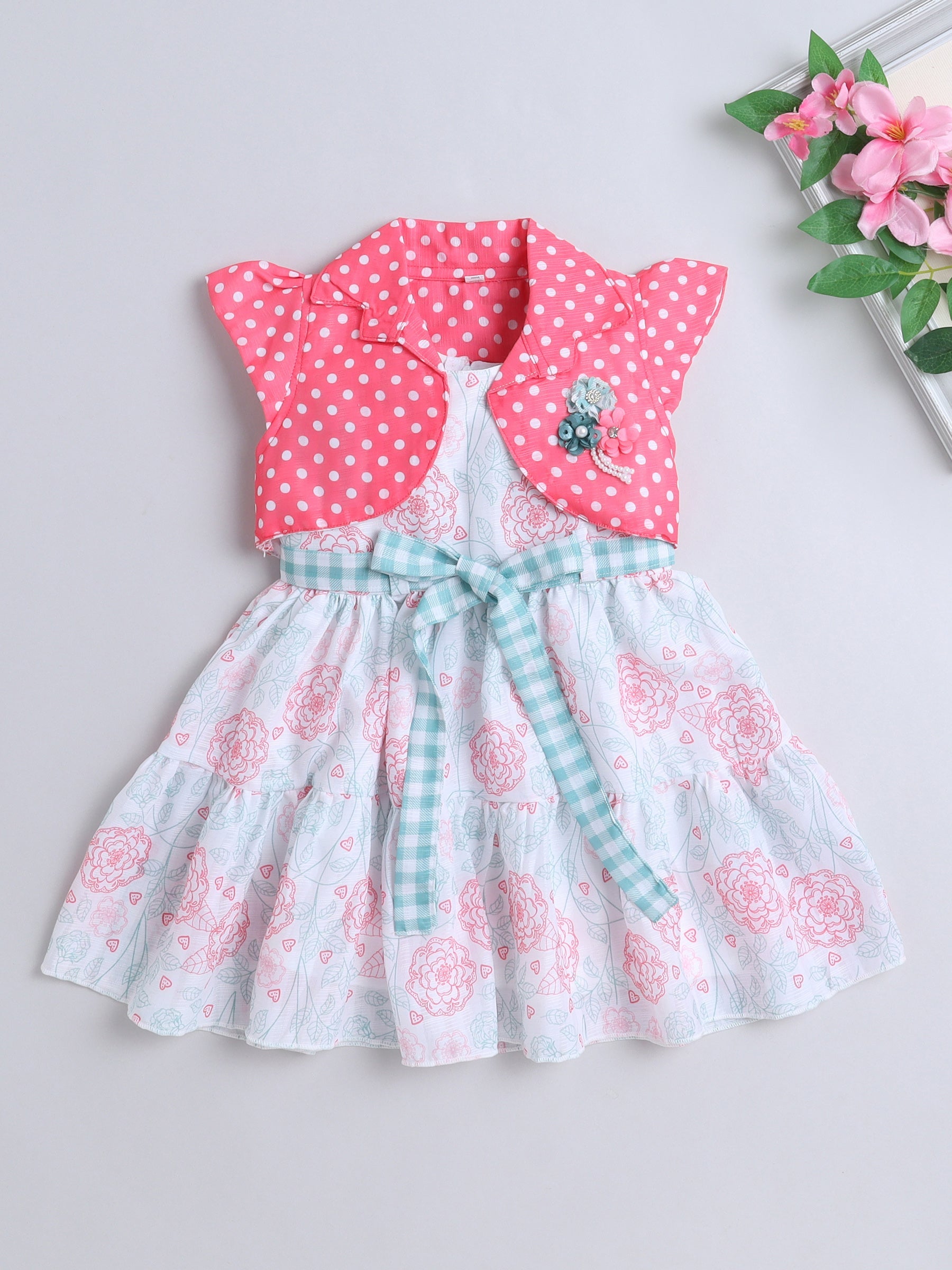 The Magic Wand Sleeveless Floral Printed Dress With Cap Sleeve Jacket - Peach