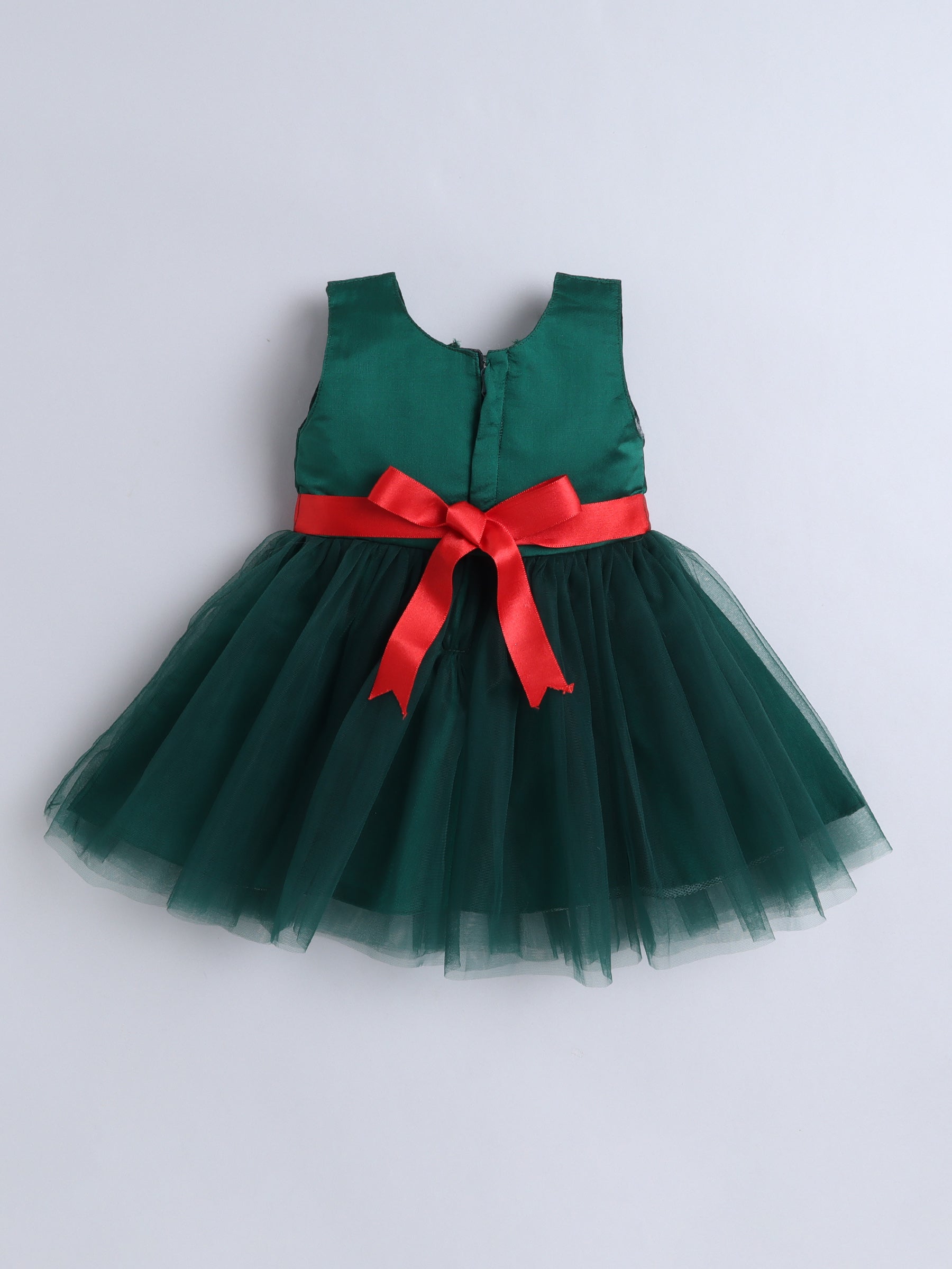 The Magic Wand Solid Sleeveless Dress With Contrast Lace Band - Green