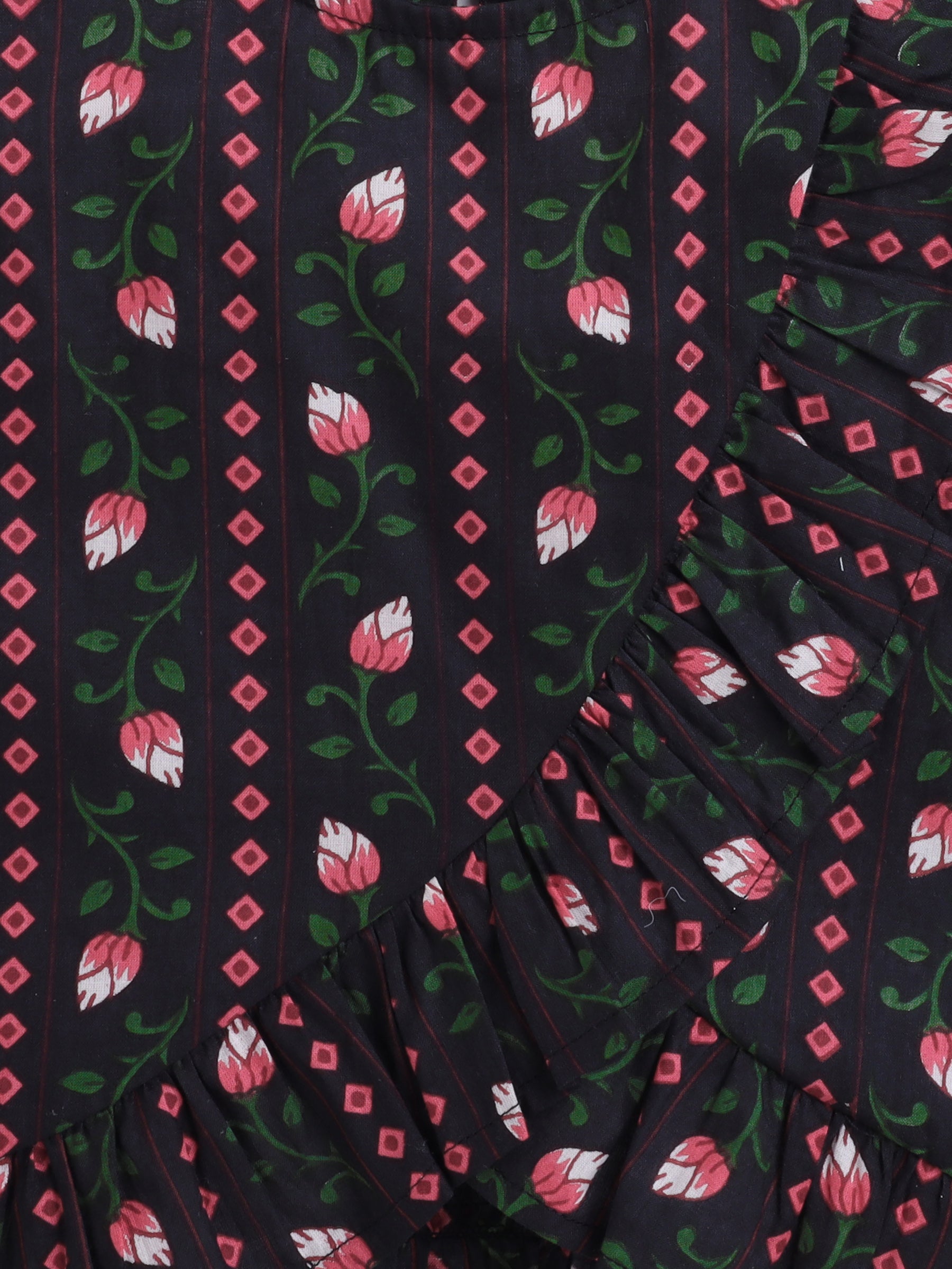 The Magic Wand Stripes Textured Ruffle Sleevless Top Black