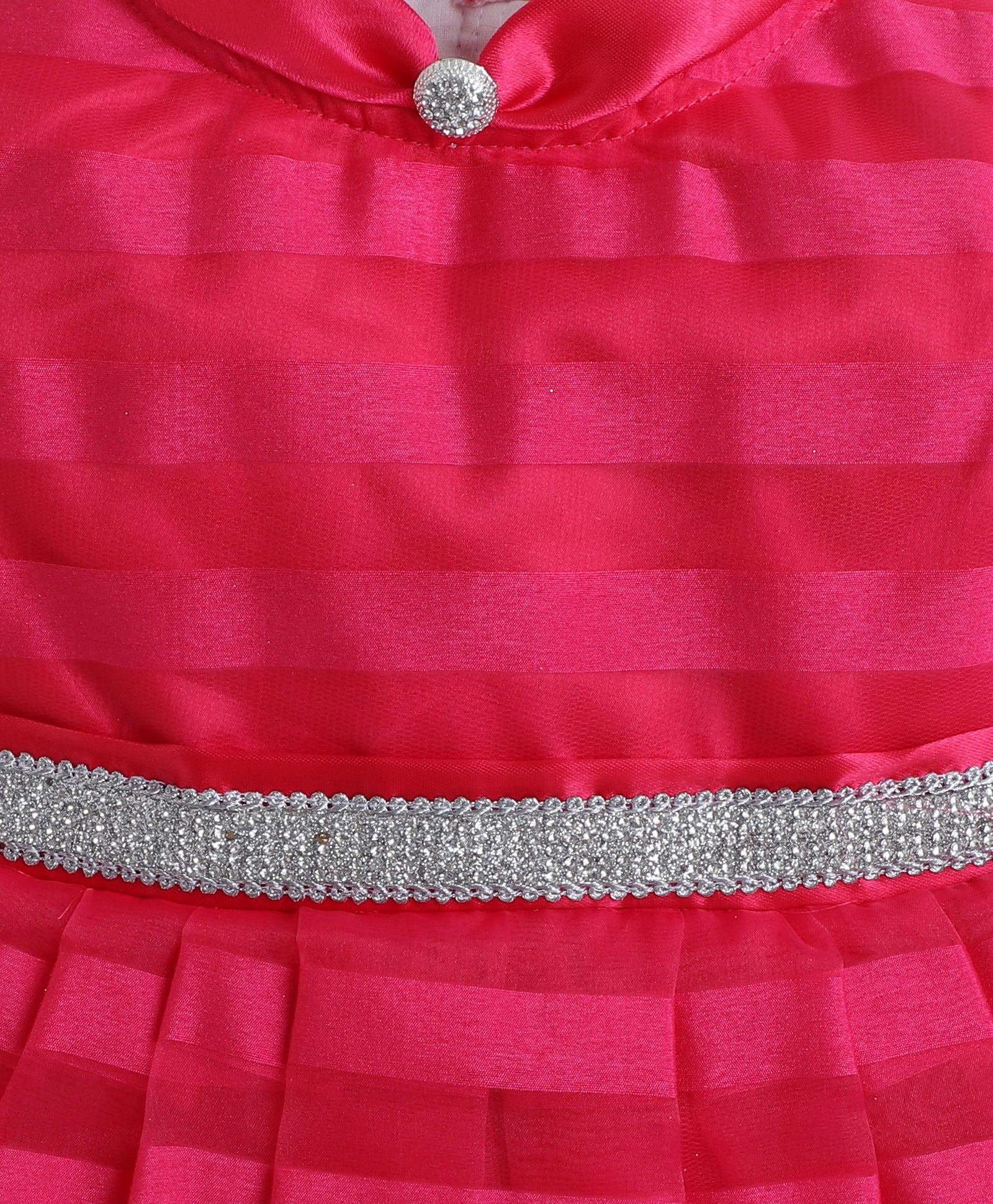 The Magic Wand Woven Cap Slevees Stripes Tie Collar Diamond Belt Flared Dress - Fuchsia