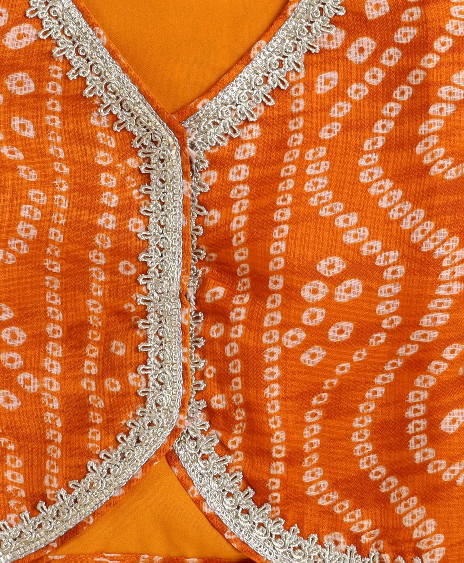 The Magic Wand Woven Frill Sleeves Bandhani Printed Embellished Lehenga and Choli Set - Orange