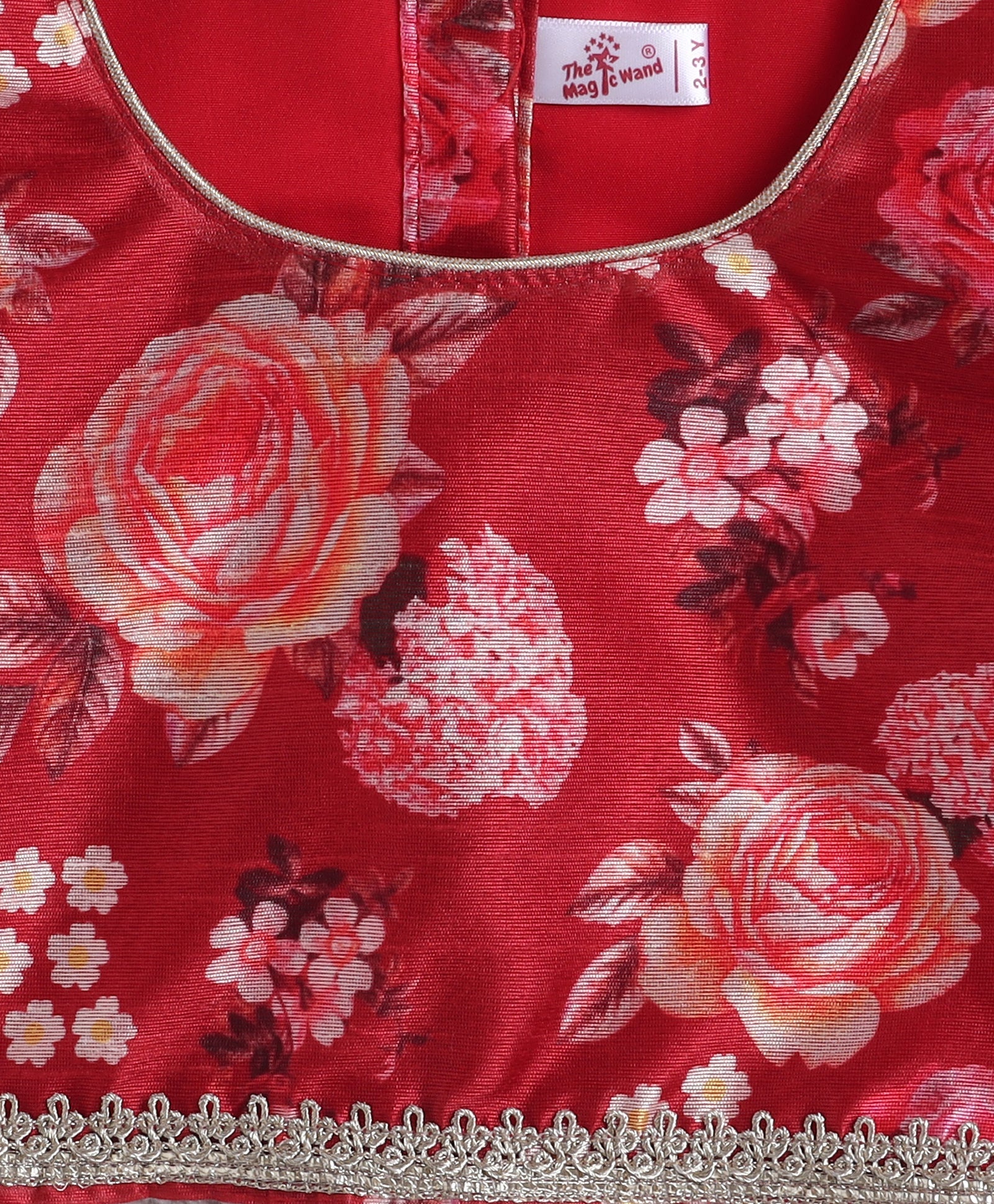 The Magic Wand Woven Frill Slevees Digital Printed Choli and Lehenga set with Dupatta- Maroon