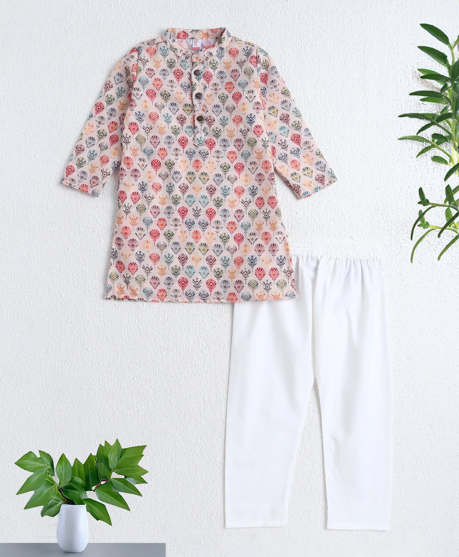 The Magic Wand Woven Full Sleeves Digital Printed Kurta & Pyjama Set-Fawn