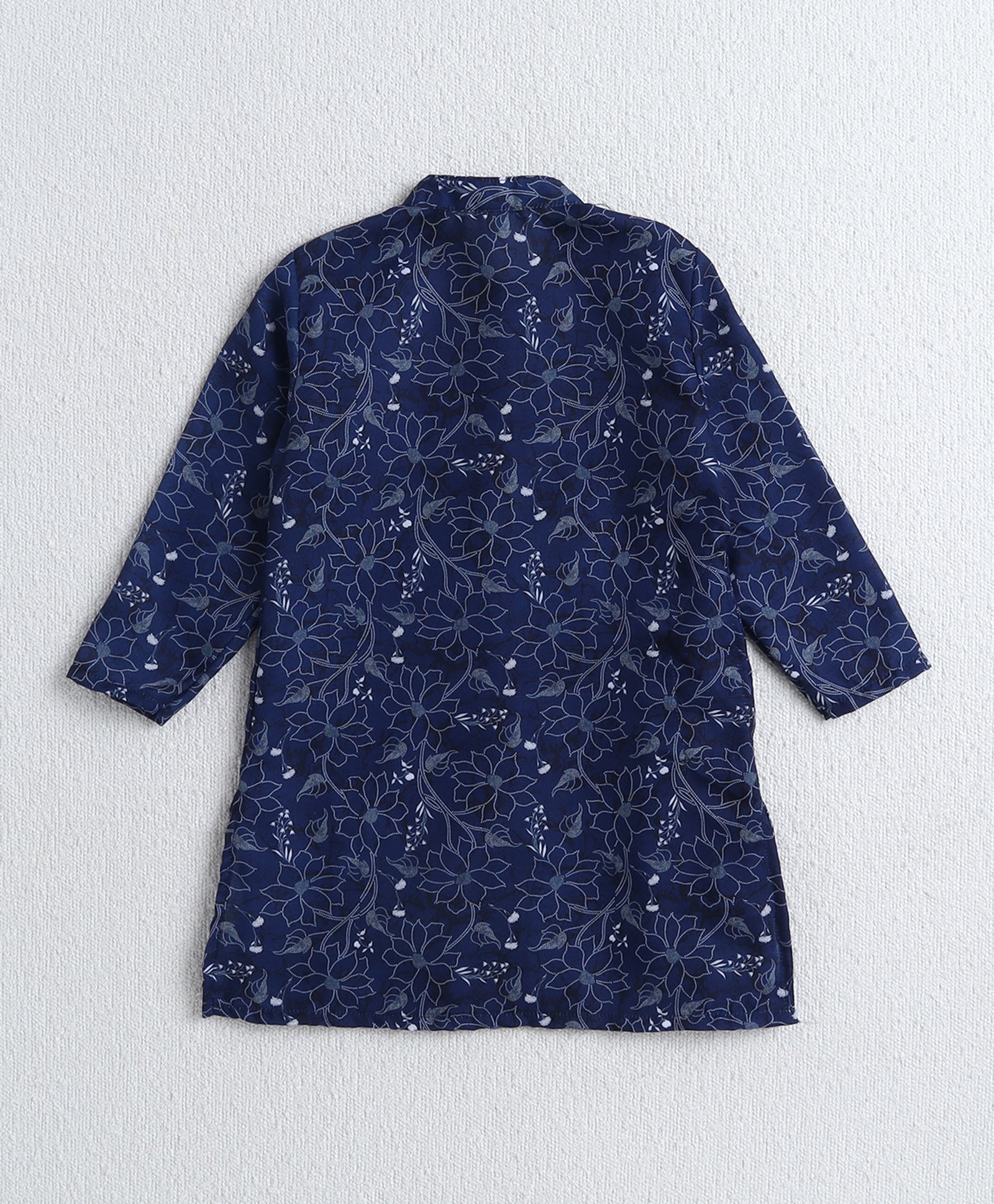 The Magic Wand Woven Full Sleeves Floral Digital Printed Kurta & Pyjama Set- Navy Blue