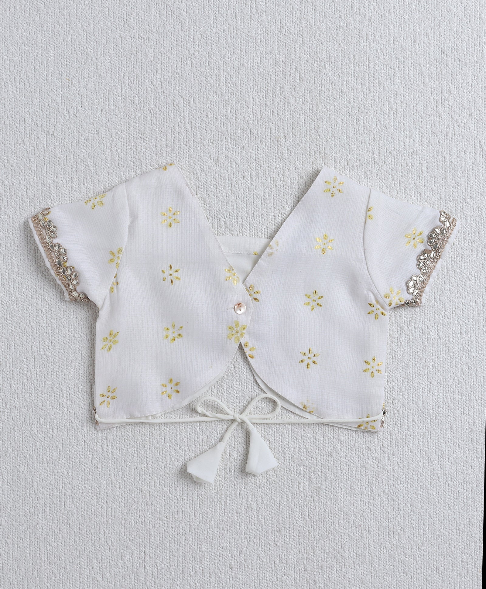 The Magic Wand Woven Half Sleeves Bandhani Printed Choli & Lehenga Set with Dupatta- White