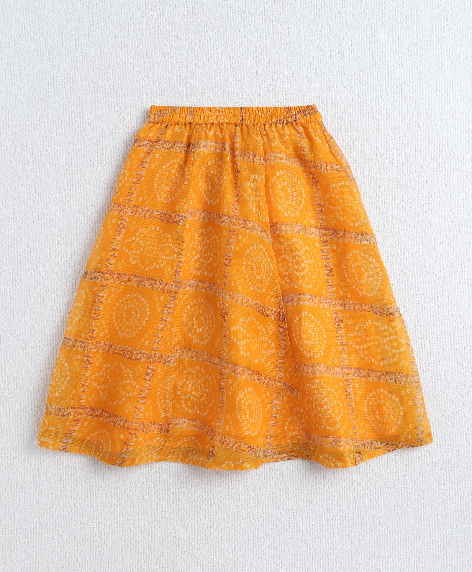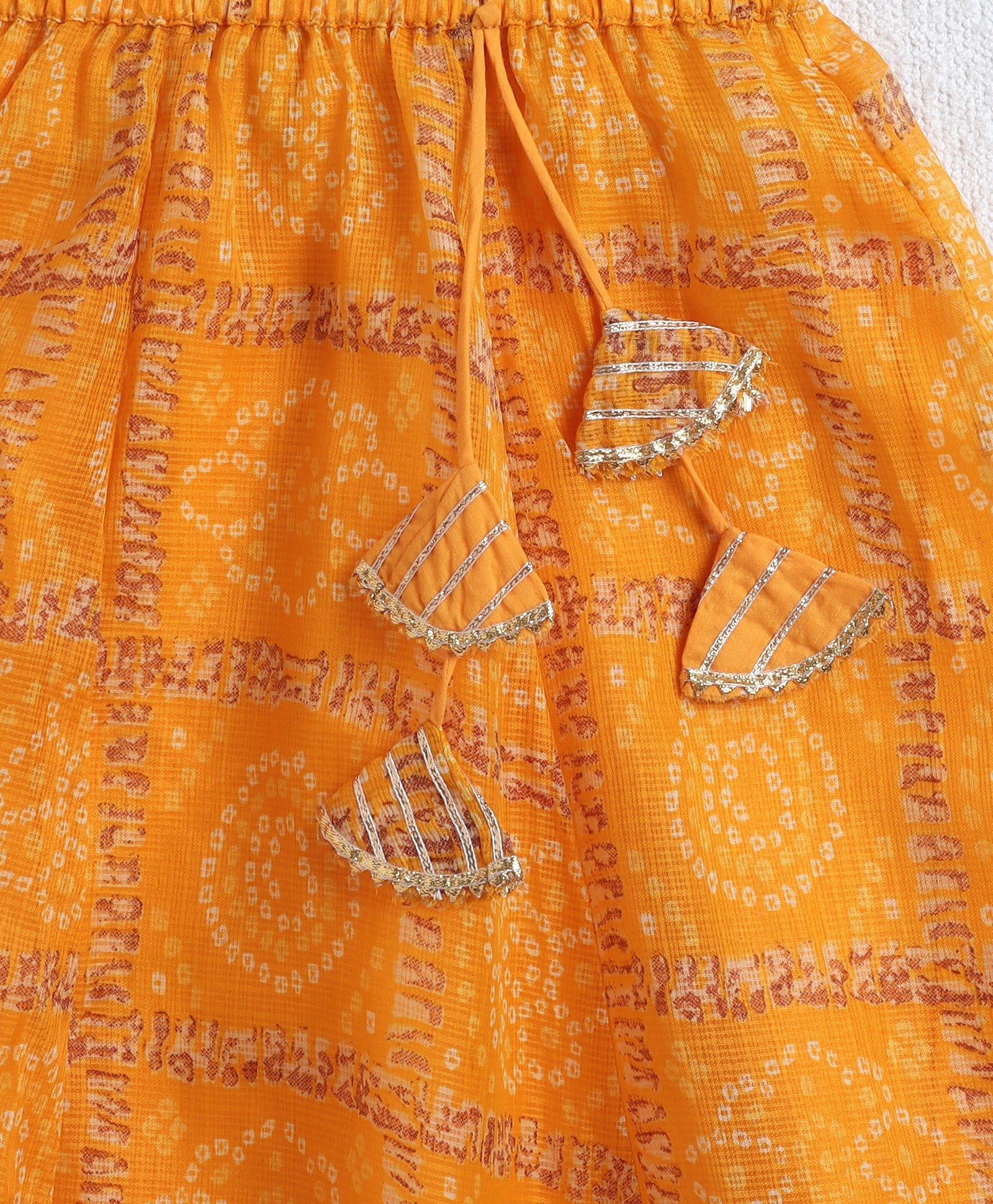 The Magic Wand Woven Half Sleeves Golden Zari Long Yoke Lace Top & Bandhani Printed Lehenga Set- Yellow