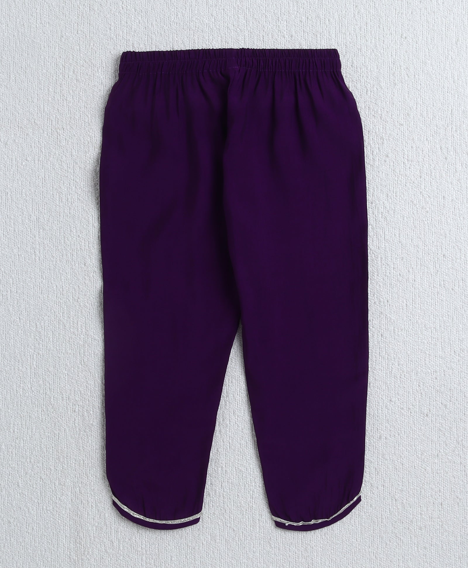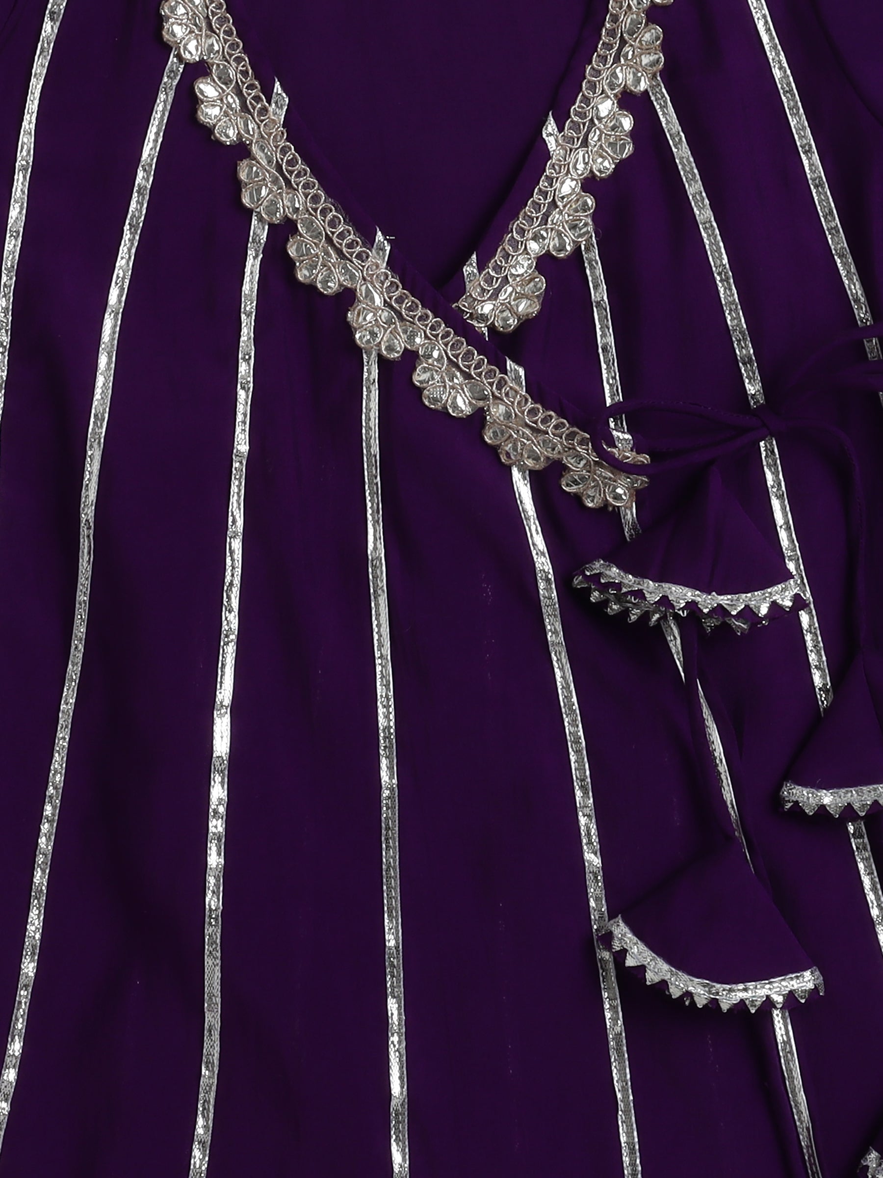 The Magic Wand Woven Half Sleeves Gota Lace Embellished Angrakha Kurta with Bottom Set- Purple