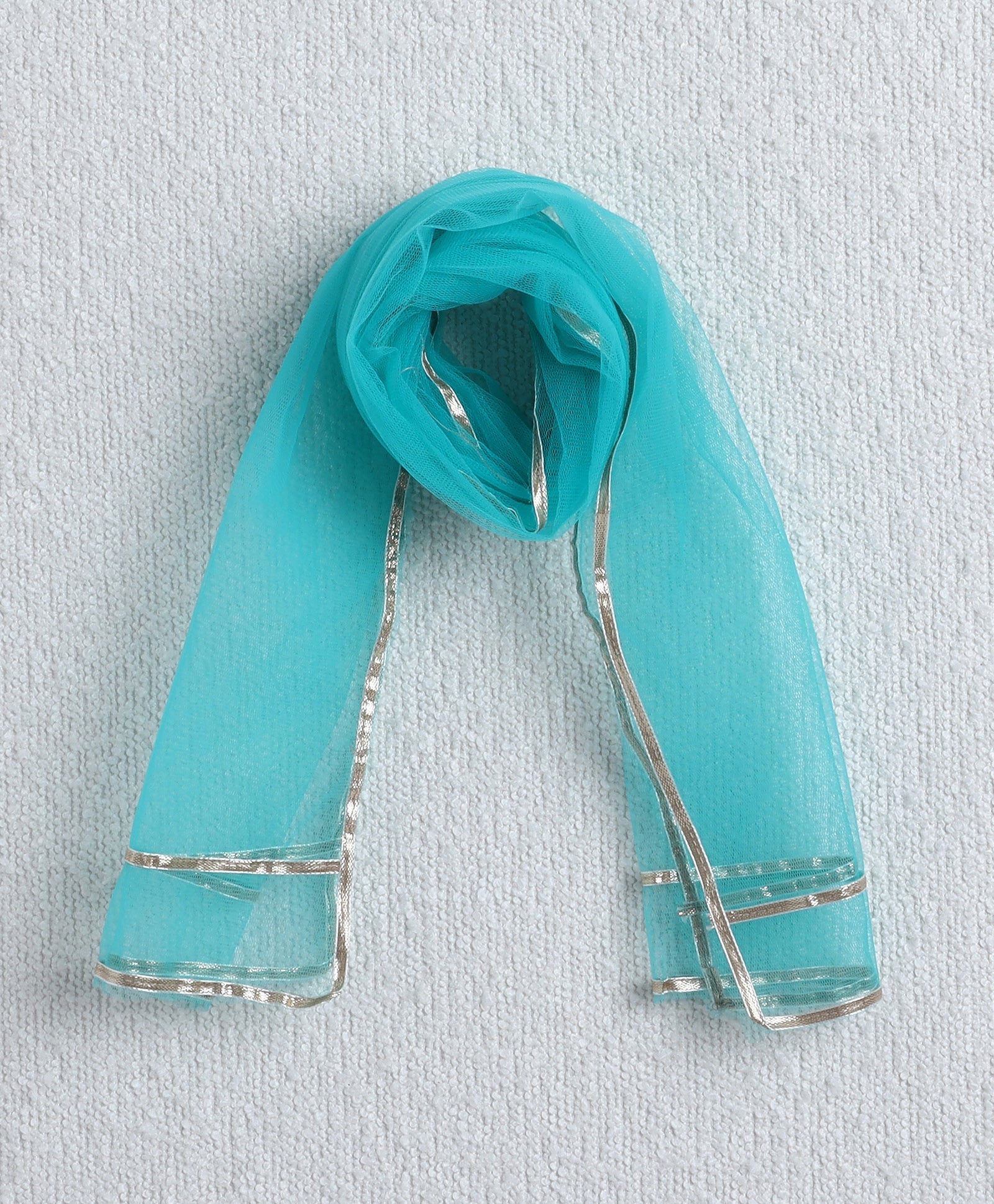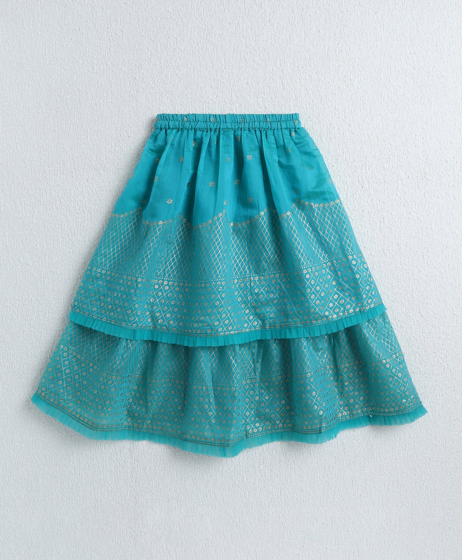 The Magic Wand Woven Half Sleeves Lace Foil Printed Lehenga and Choli with Dupatta Set- Blue