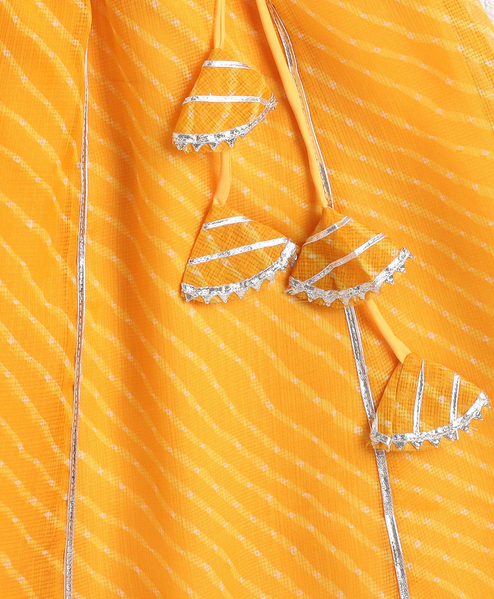 The Magic Wand Woven Half Sleeves Leheriya Printed Choli & Lehenga Set with Dupatta- Yellow