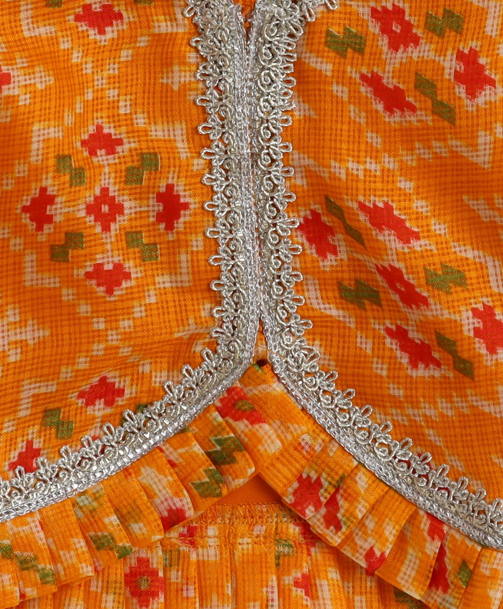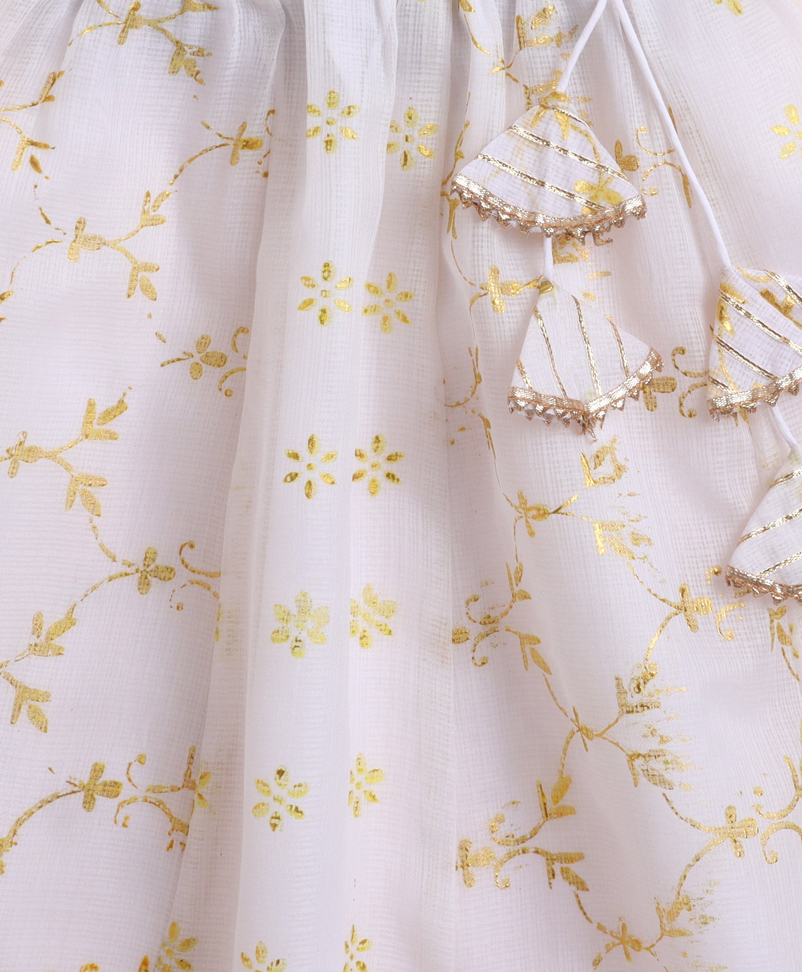 The Magic Wand Woven Kota Doriya Ruffle Sleeves Bandhani Printed Blouse and Foil Lehenga - Yellow