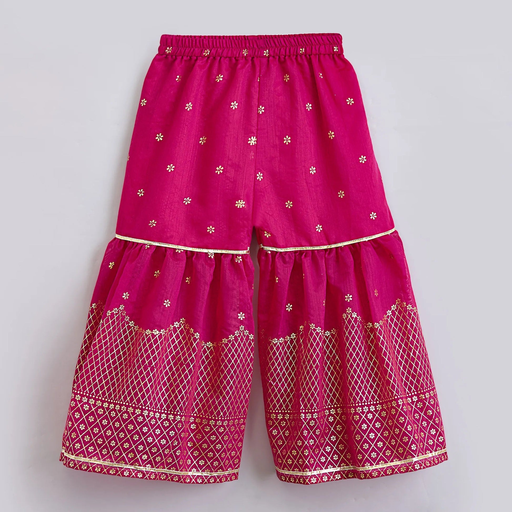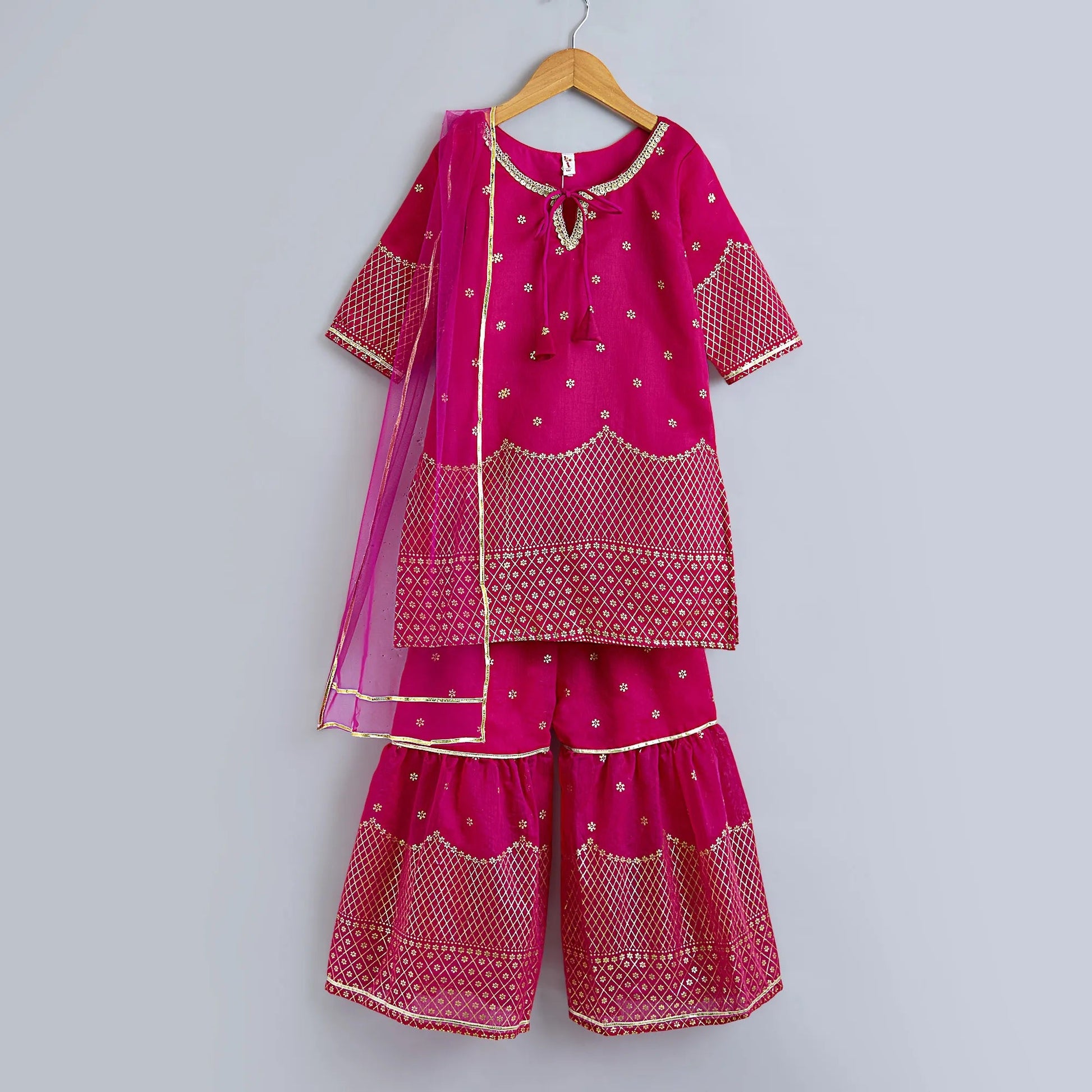 The Magic Wand Woven Lace Embellished Three Fourth Sleeves Kurta Sharara with Dupatta - Fuchsia