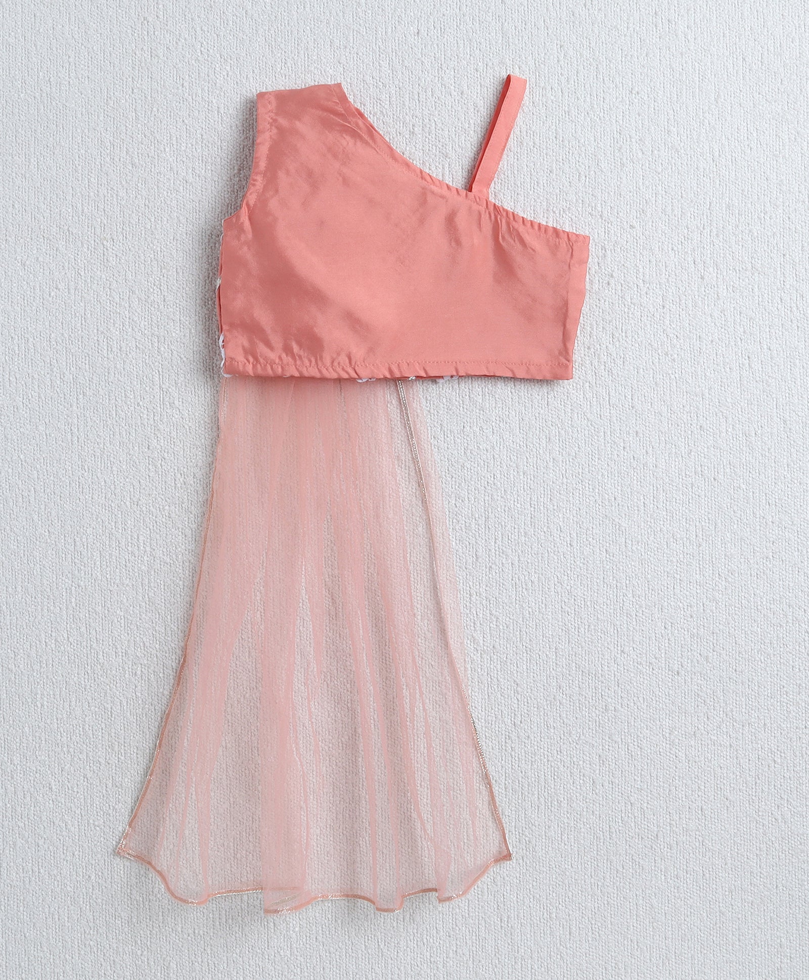 The Magic Wand Woven One Shoulder Choli and Lehenga with attach Dupatta Set Peach