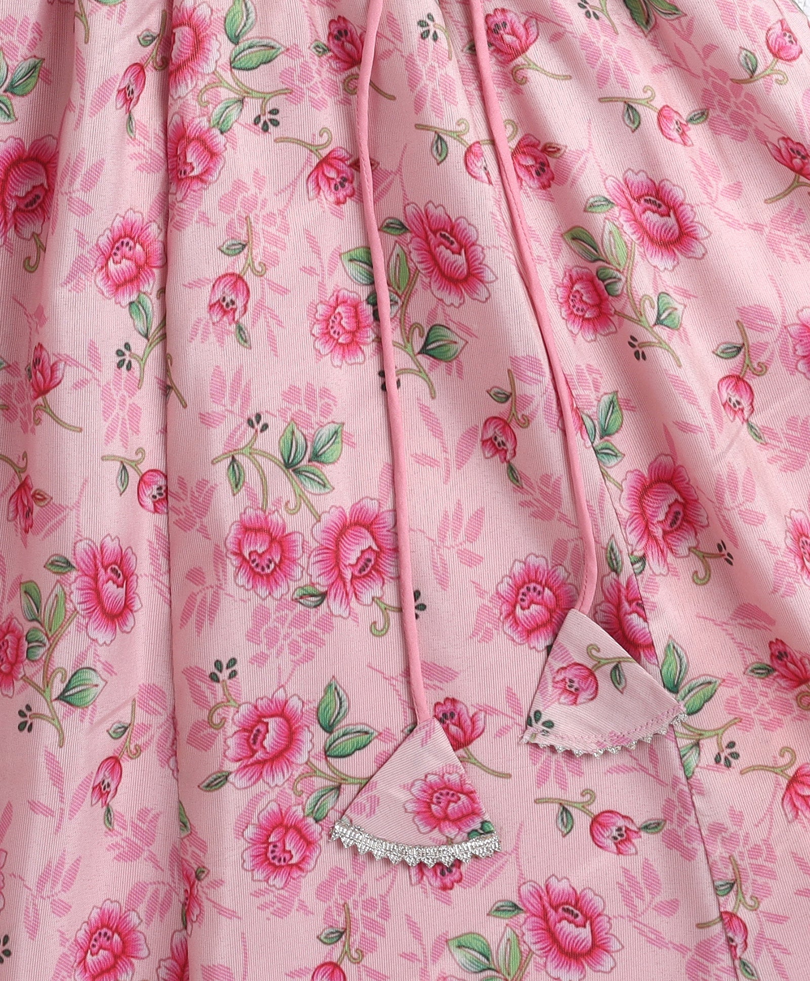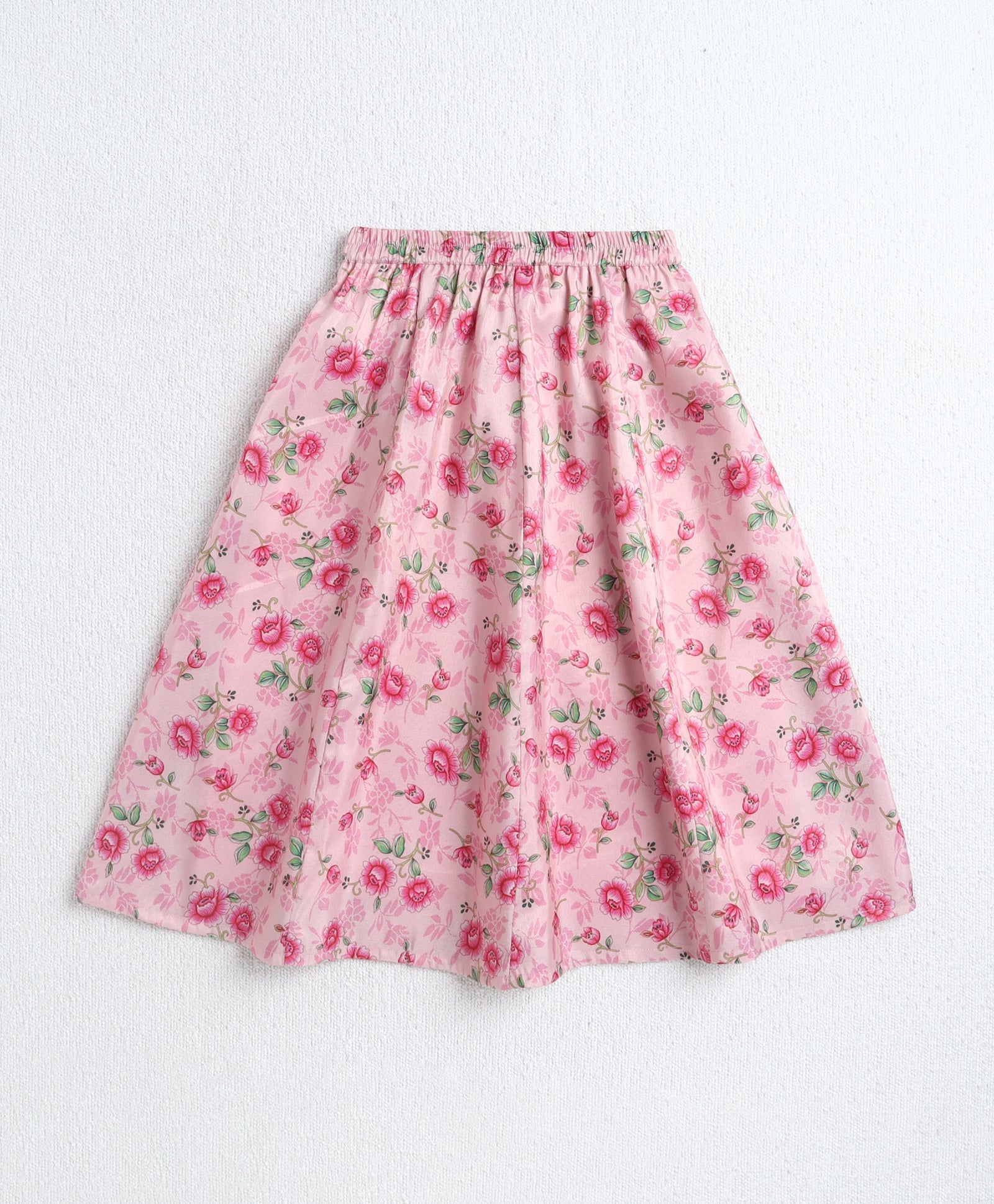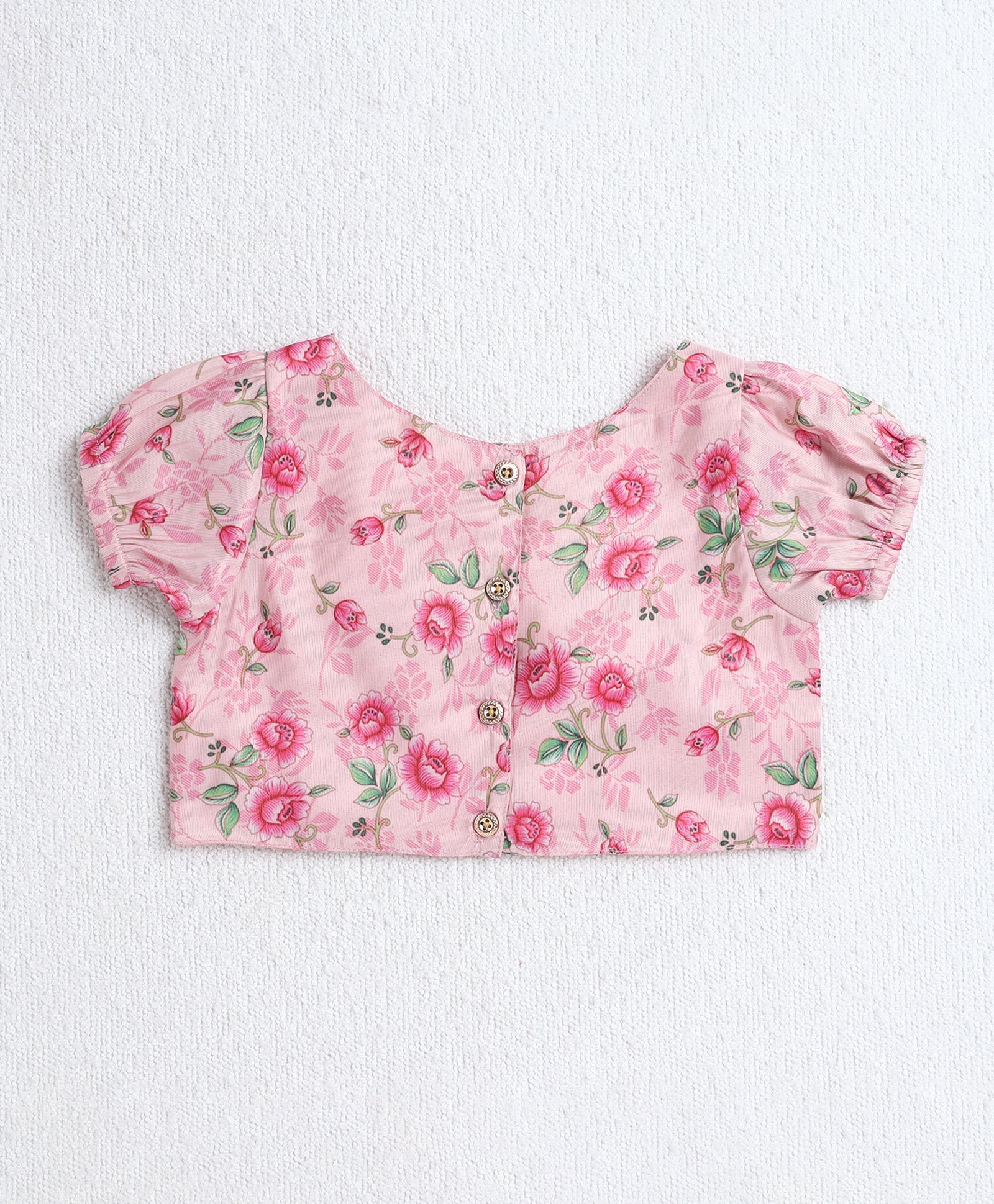 The Magic Wand Woven Puff Slevees Digital Floral Printed Choli and Lehenga Set with Dupatta- Pink