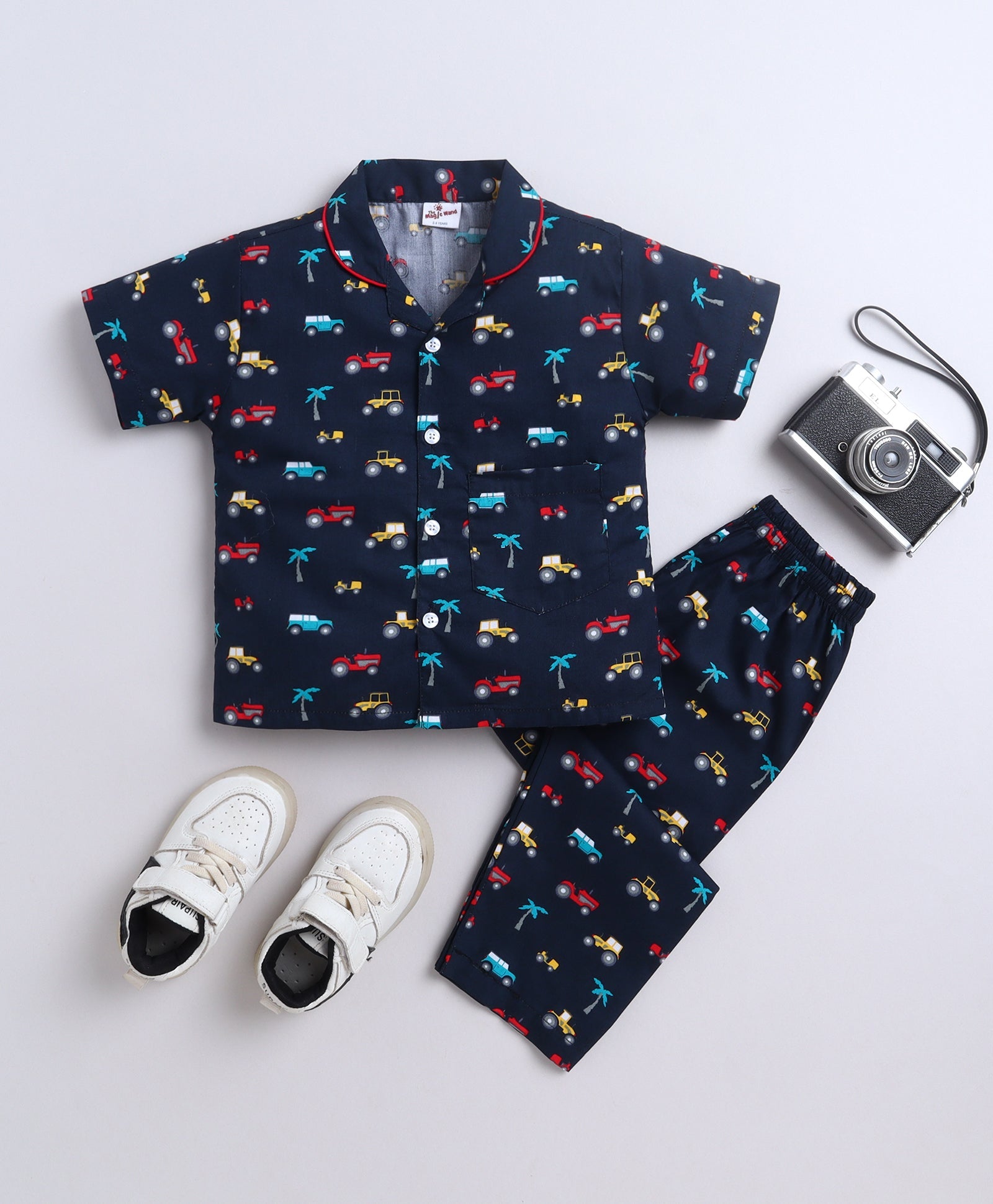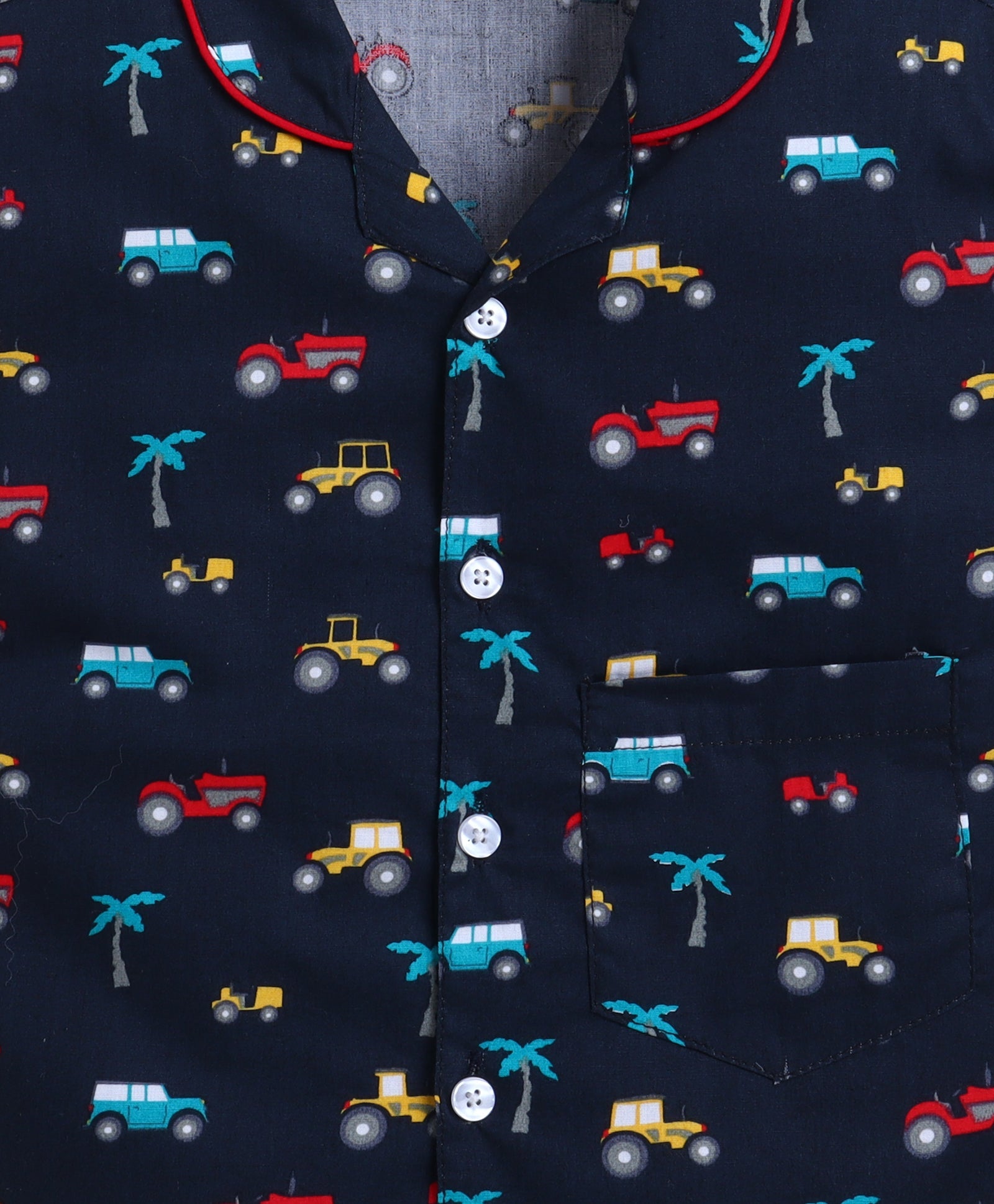 The Magic Wand Woven Rayon Half Sleeves AII Over Printed Night Suit Set- Navy Blue
