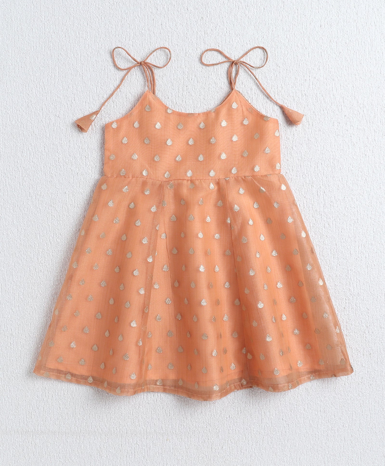 The Magic Wand Woven Shoulder Tie Up AII Over Butti Kurti with Bottom Set Peach