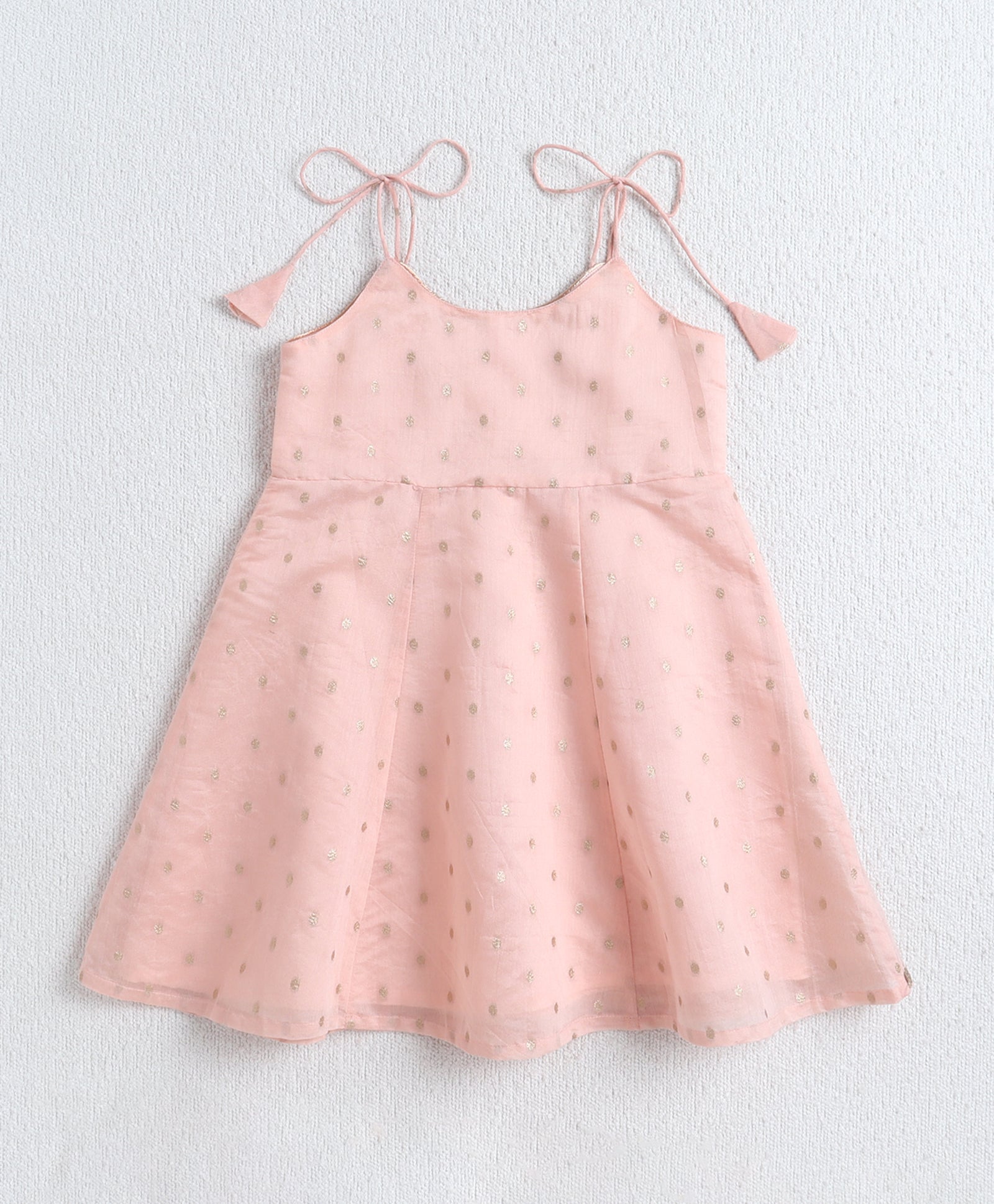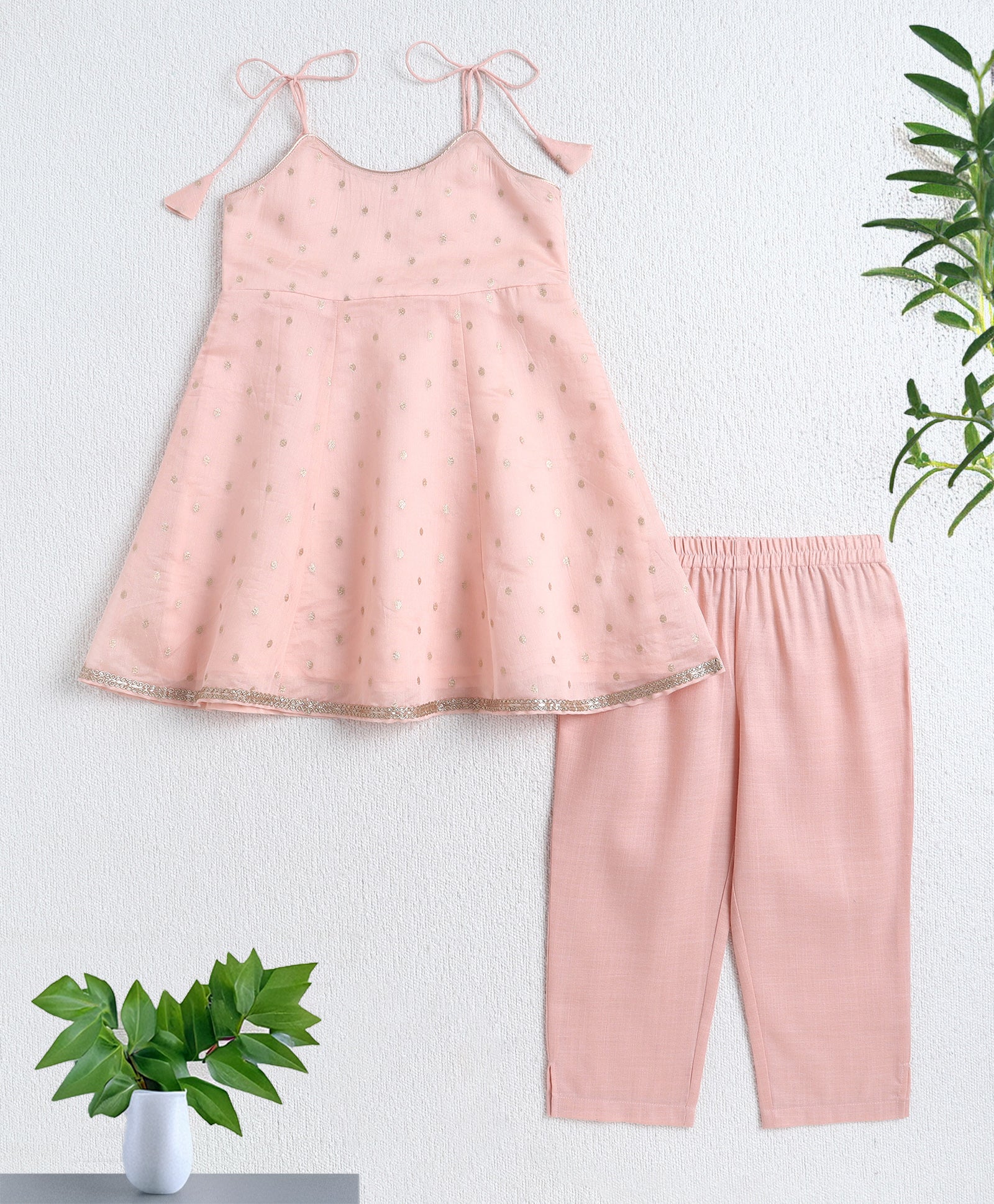 The Magic Wand Woven Shoulder Tie Up AII Over Butti Kurti with Bottom Set Peach