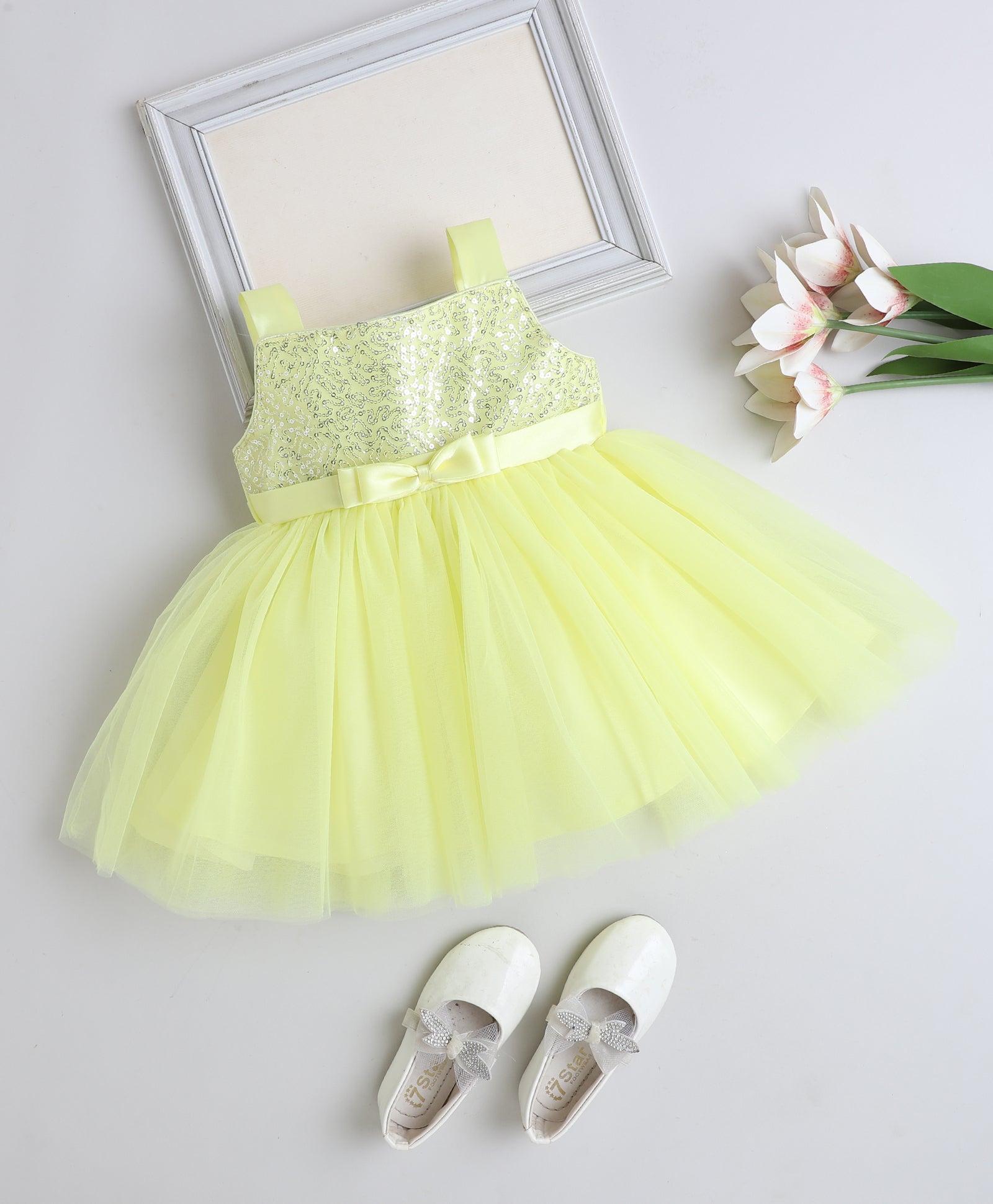 The Magic Wand Woven Sleeveless Corsage Detailed Flared Dress- Yellow