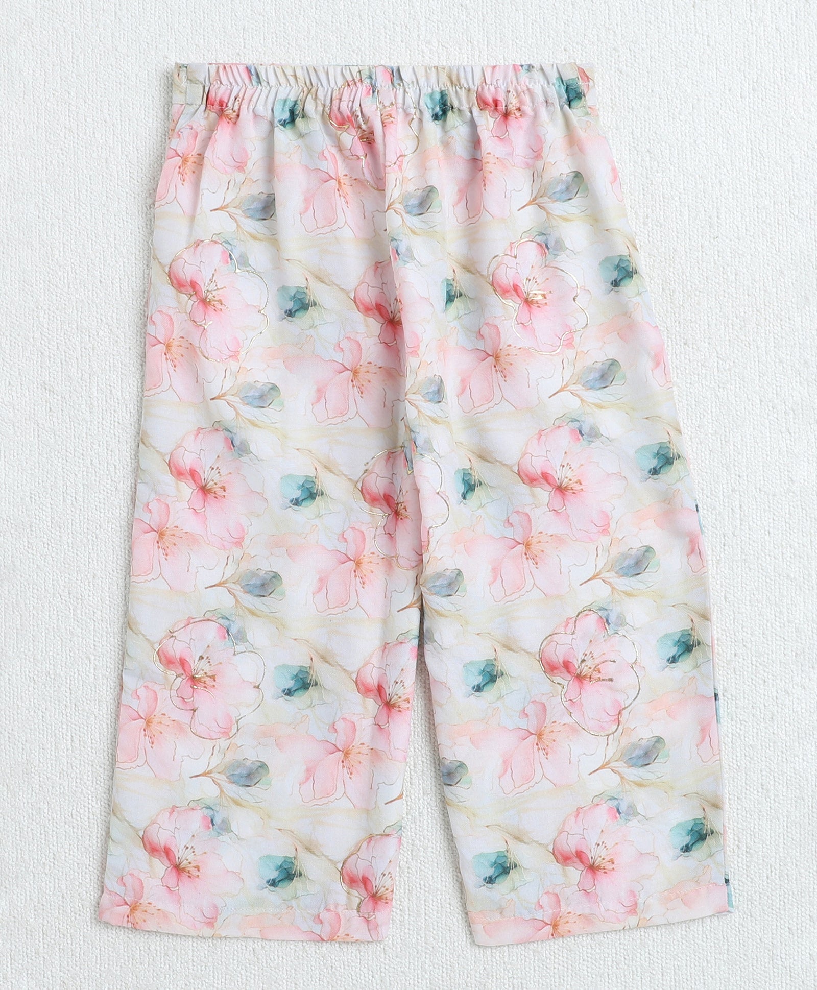 Woven Sleeveless Floral Printed Top and Co-Ordinating Pant Set- Peach