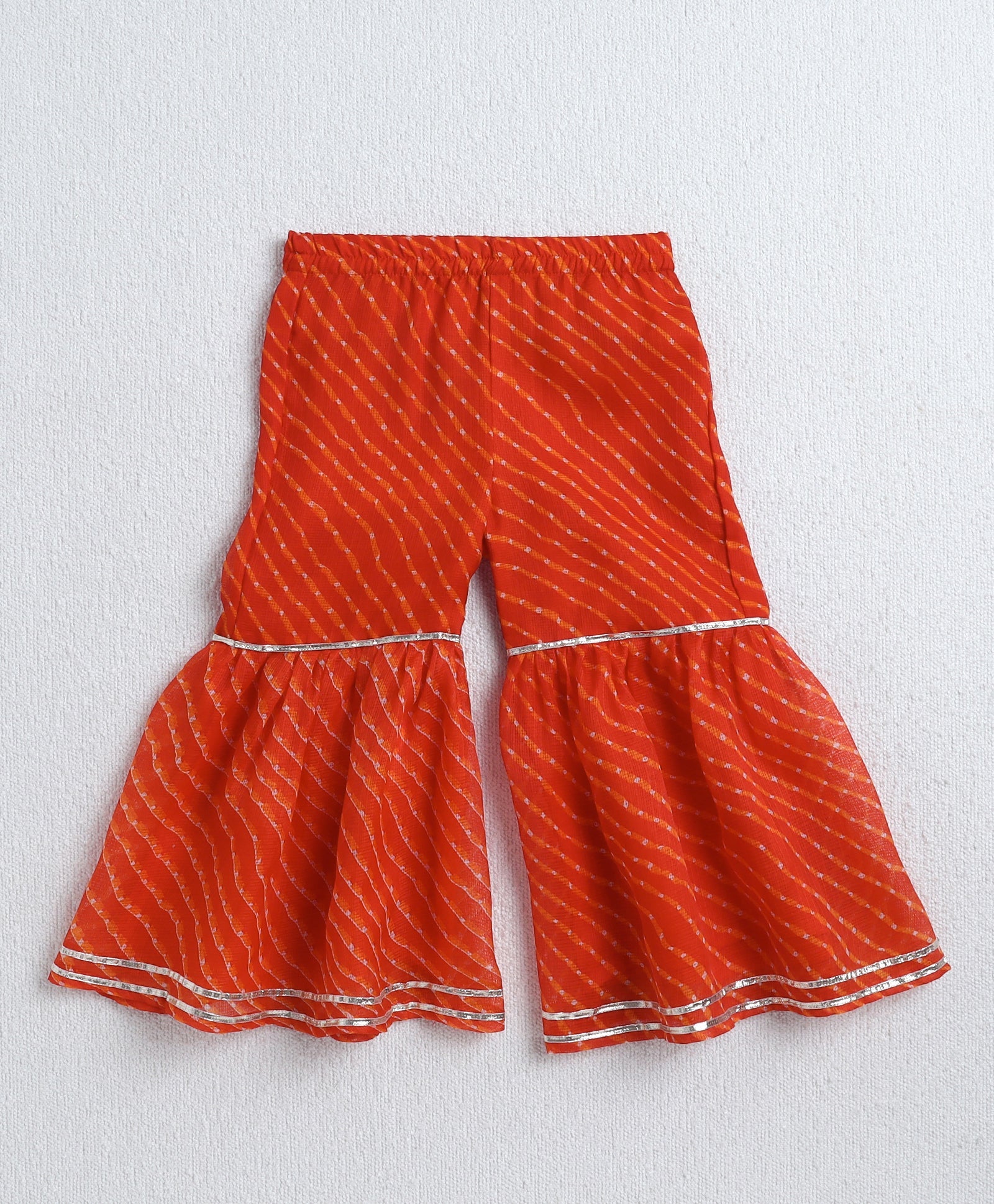 The Magic Wand Woven Sleeveless Leheriya Printed Gota Lace Embellished Kurta and Sharara Dupatta Set- Orange
