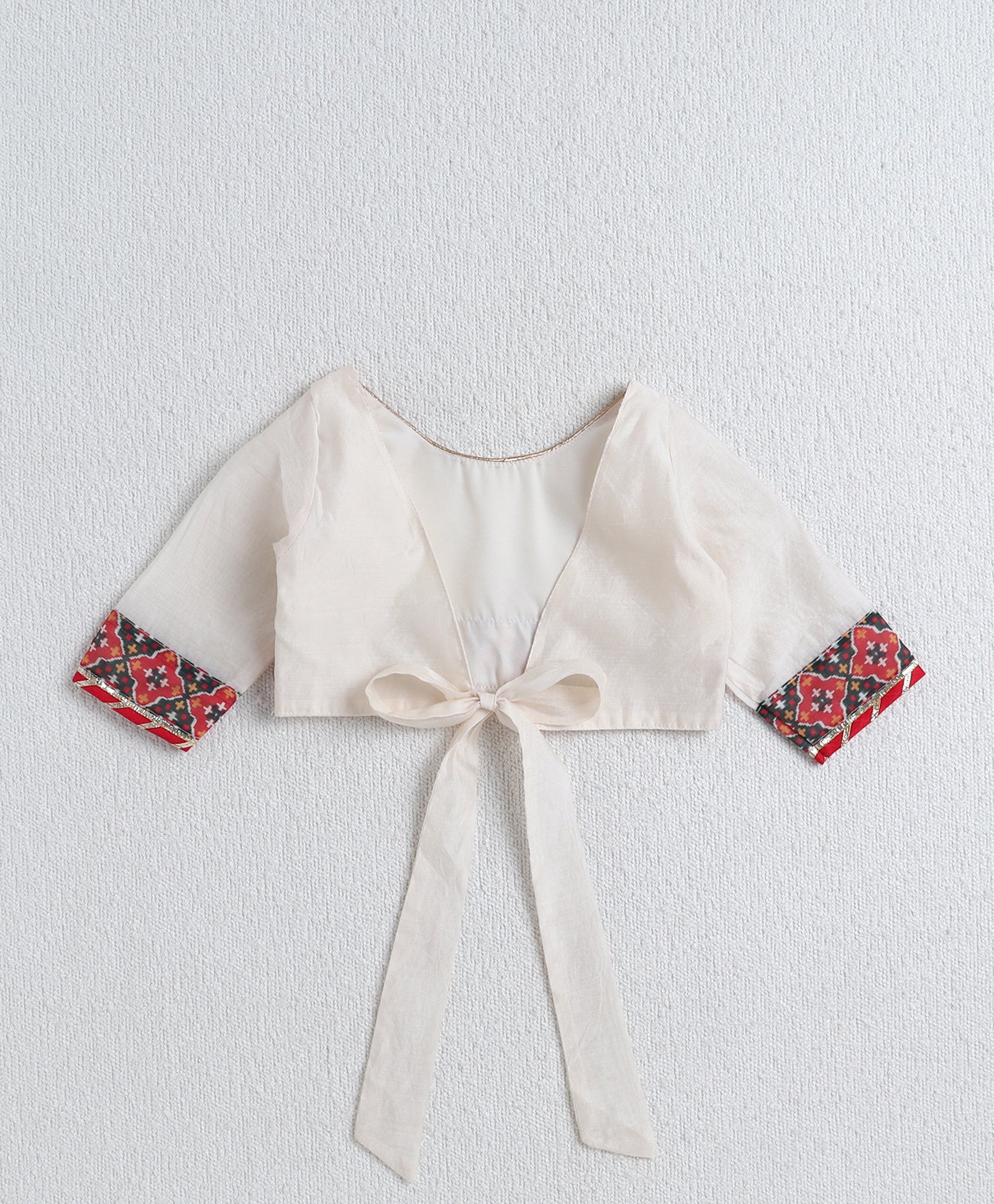 The Magic Wand Woven Solid Printed Three Fourth Sleeeves Choli and Lehenga Set with Dupatta- White