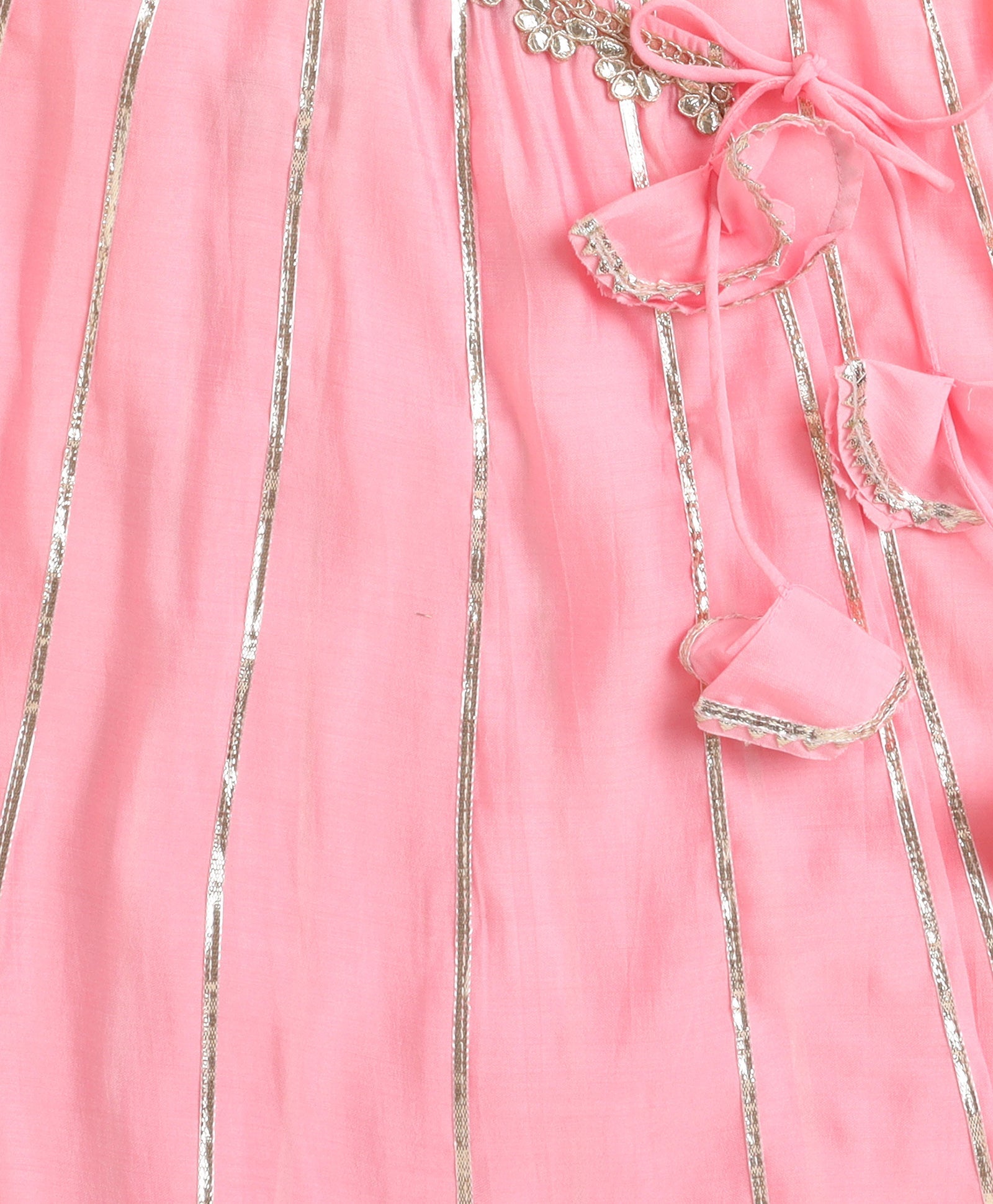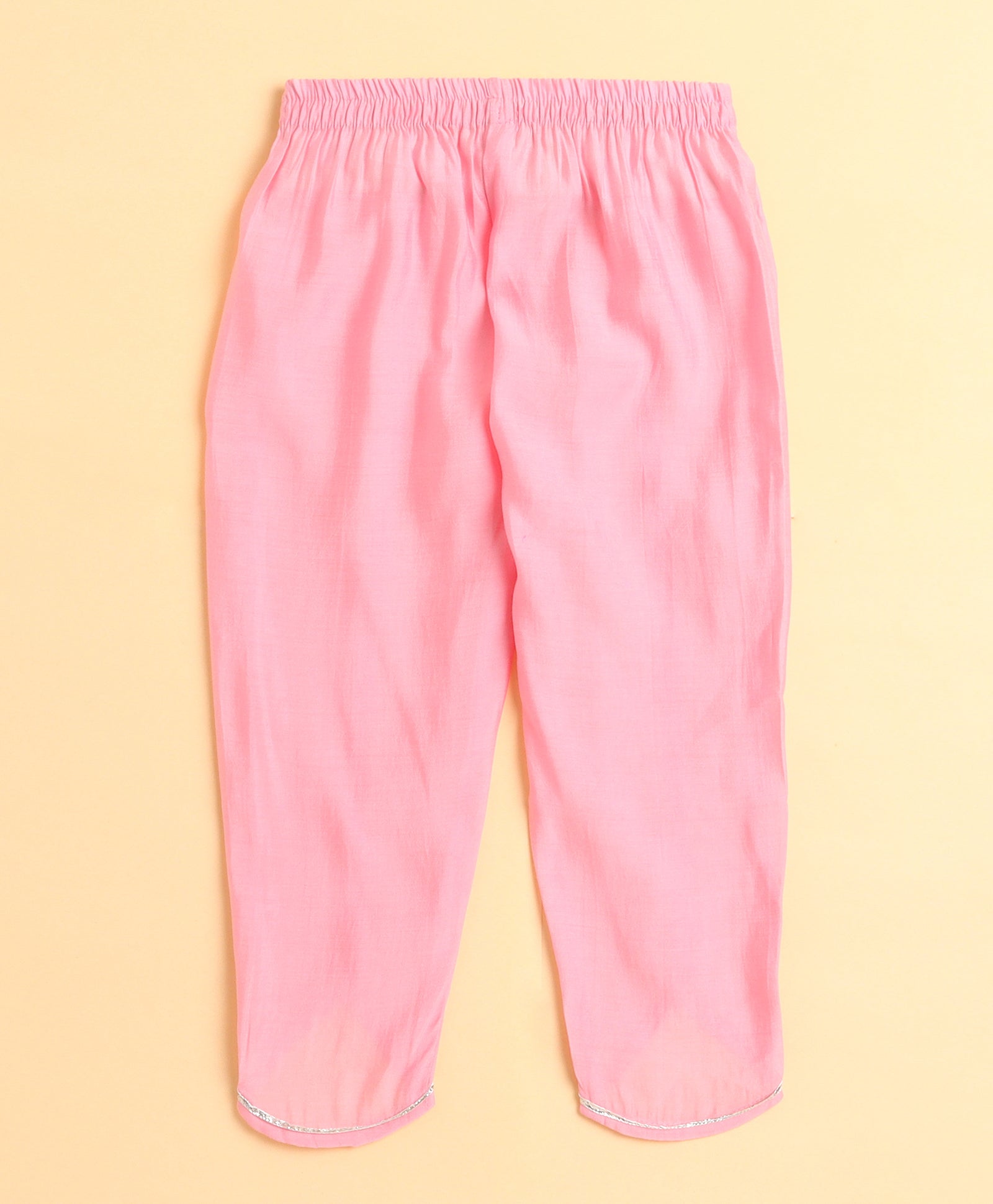 The Magic Wand Woven Solid Printed Three Fourth Sleeves Lace Embellished Kurti and Salwar Set- Pink