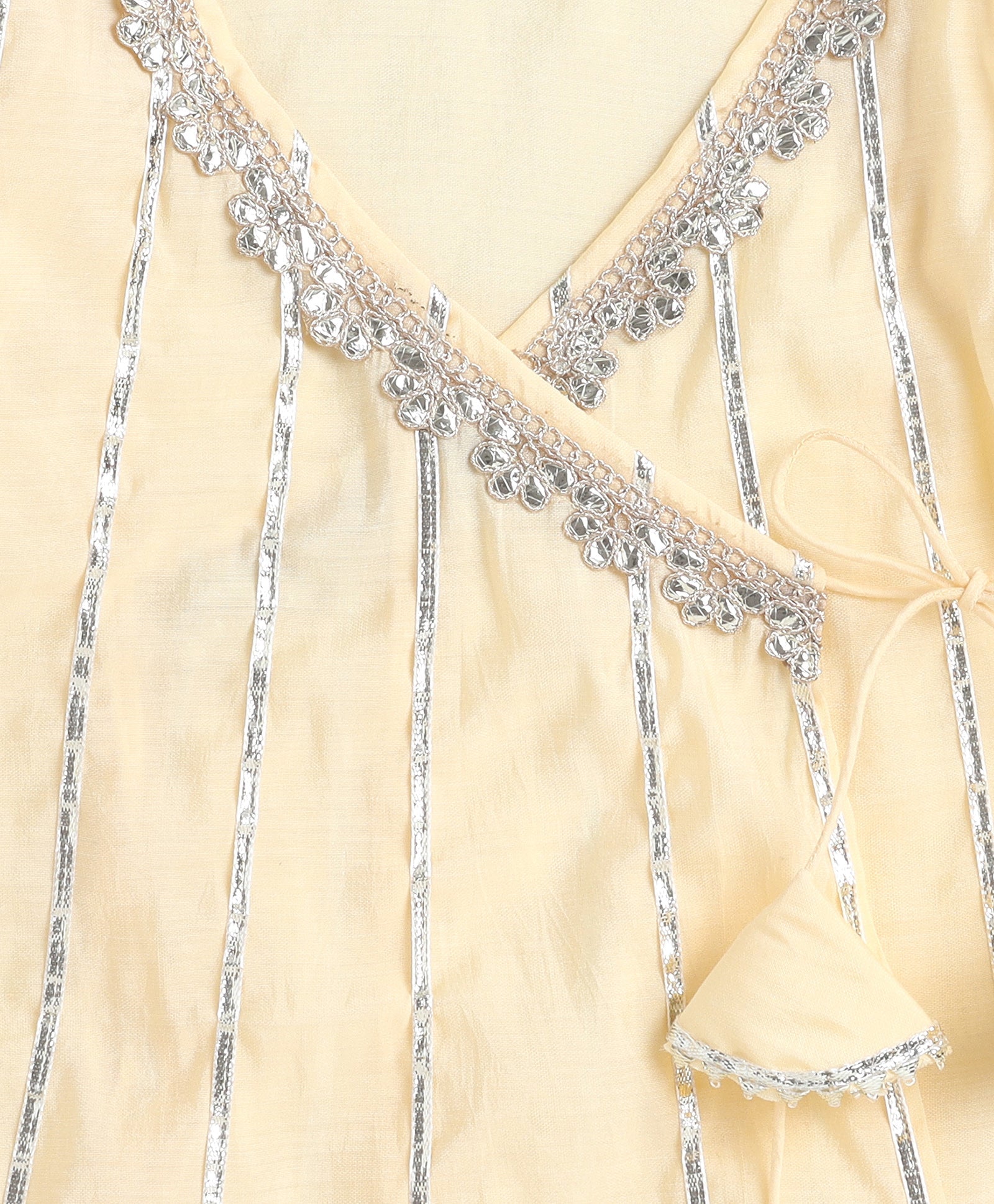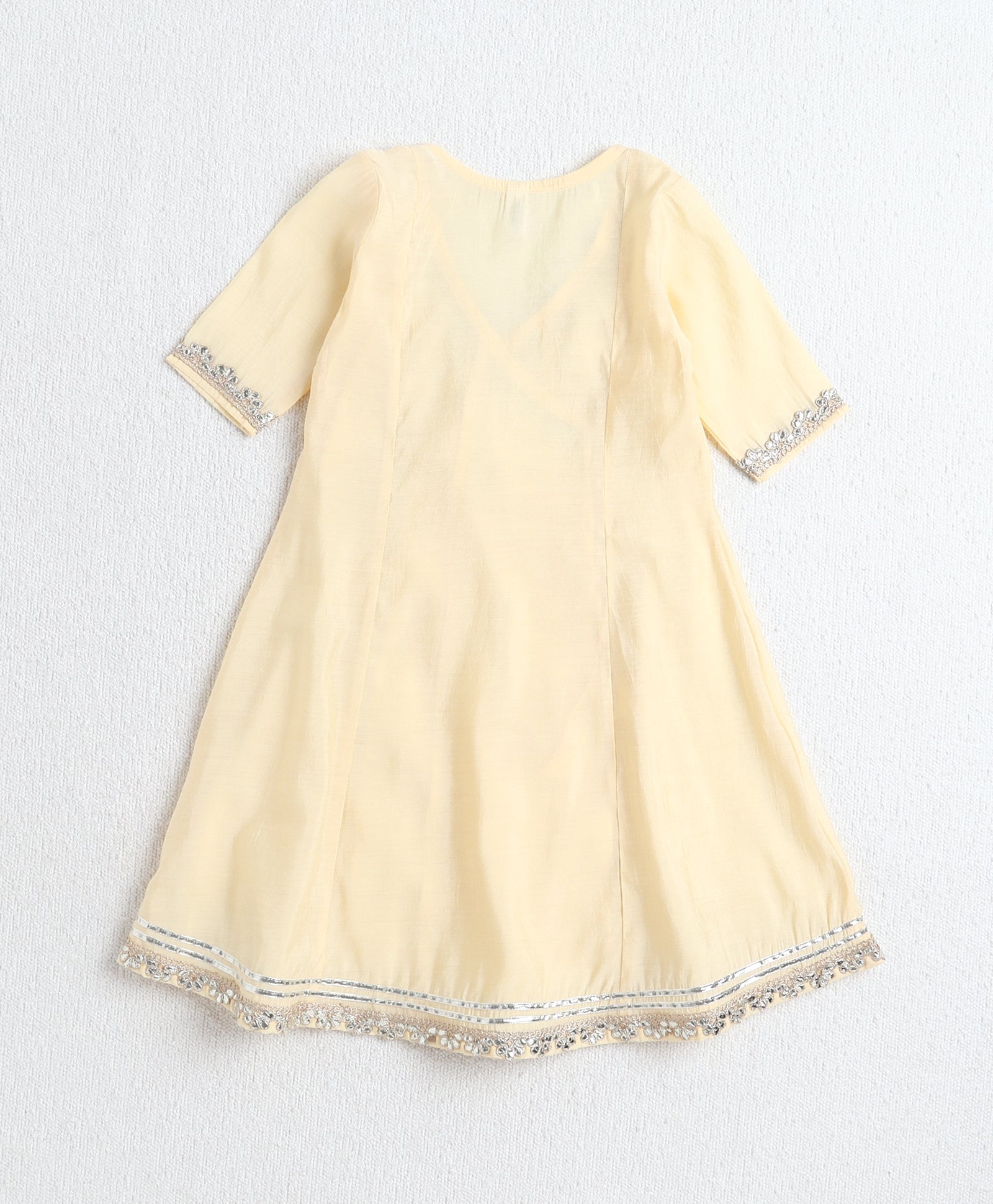 The Magic Wand Woven Three Fourth Sleeves Angrakha Style Kurta and Bottom- Yellow