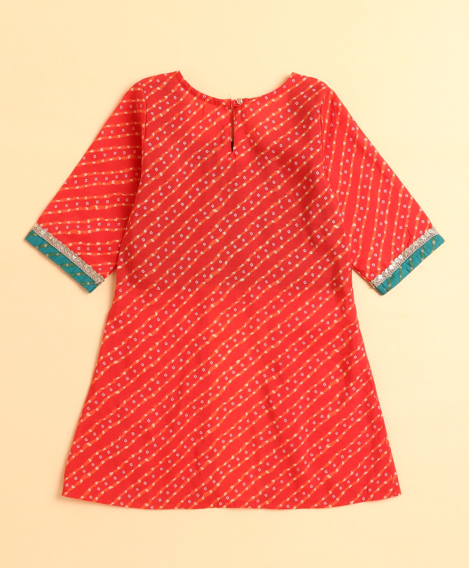 The Magic Wand Woven Three Fourth Sleeves Bandhani Printed Top and Bottom Set- Orange