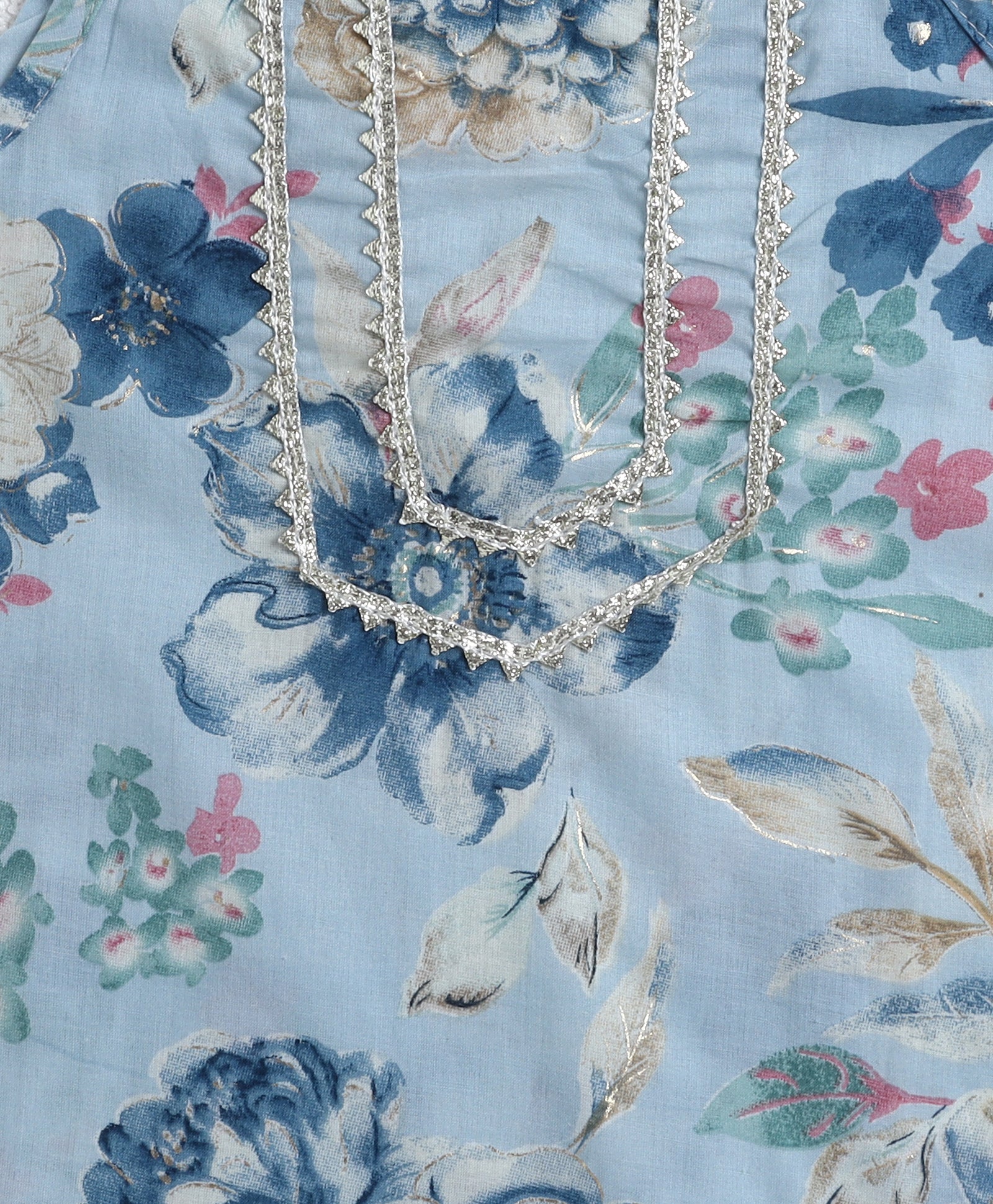 The Magic Wand Cotton Woven Floral Printed Singlet Kurti and Sharara Set with Dupatta Blue