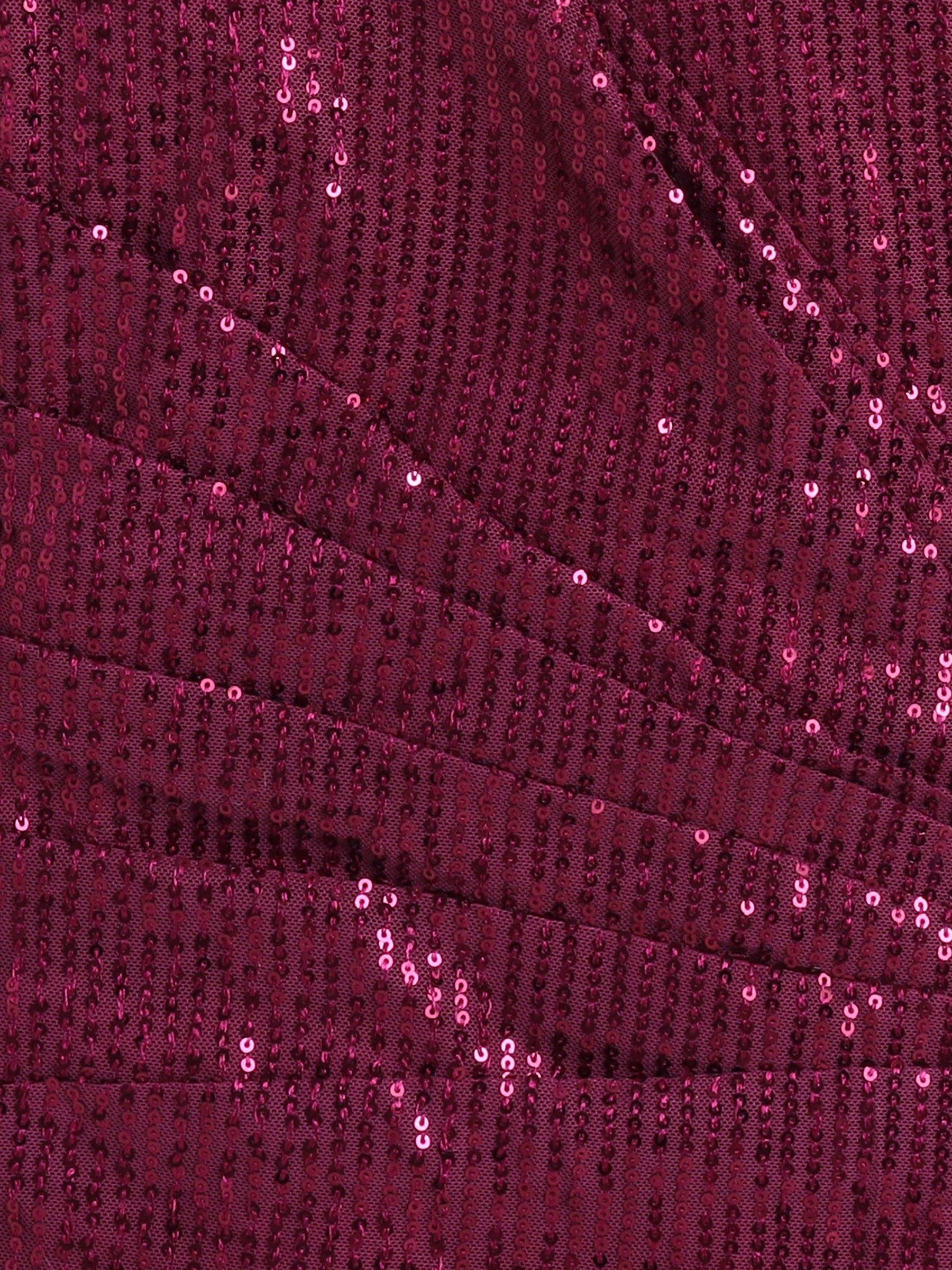Three Fourth Sleeves Sequins Embellished Dress - Wine