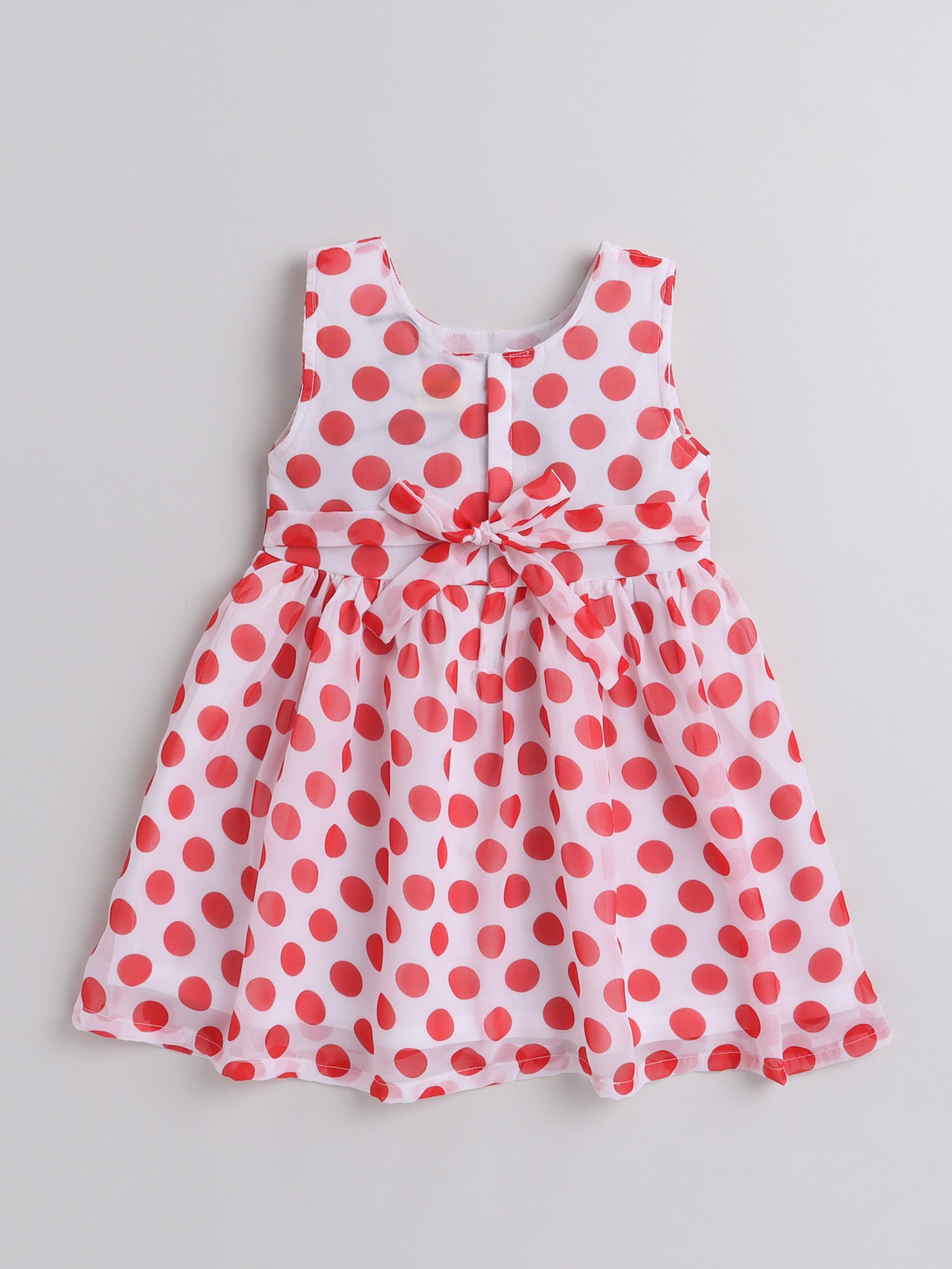 Xmas Big Polka Dots Printed Sleeveless Dress With Bow For Girls-White,Red