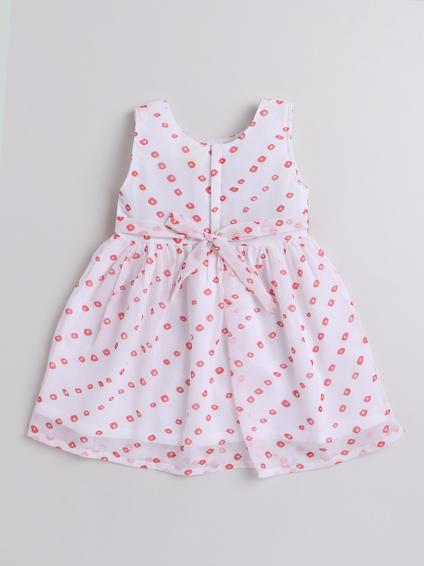 Xmas Square Dots Printed Sleeveless Dress With Bow For Girls-White,Red