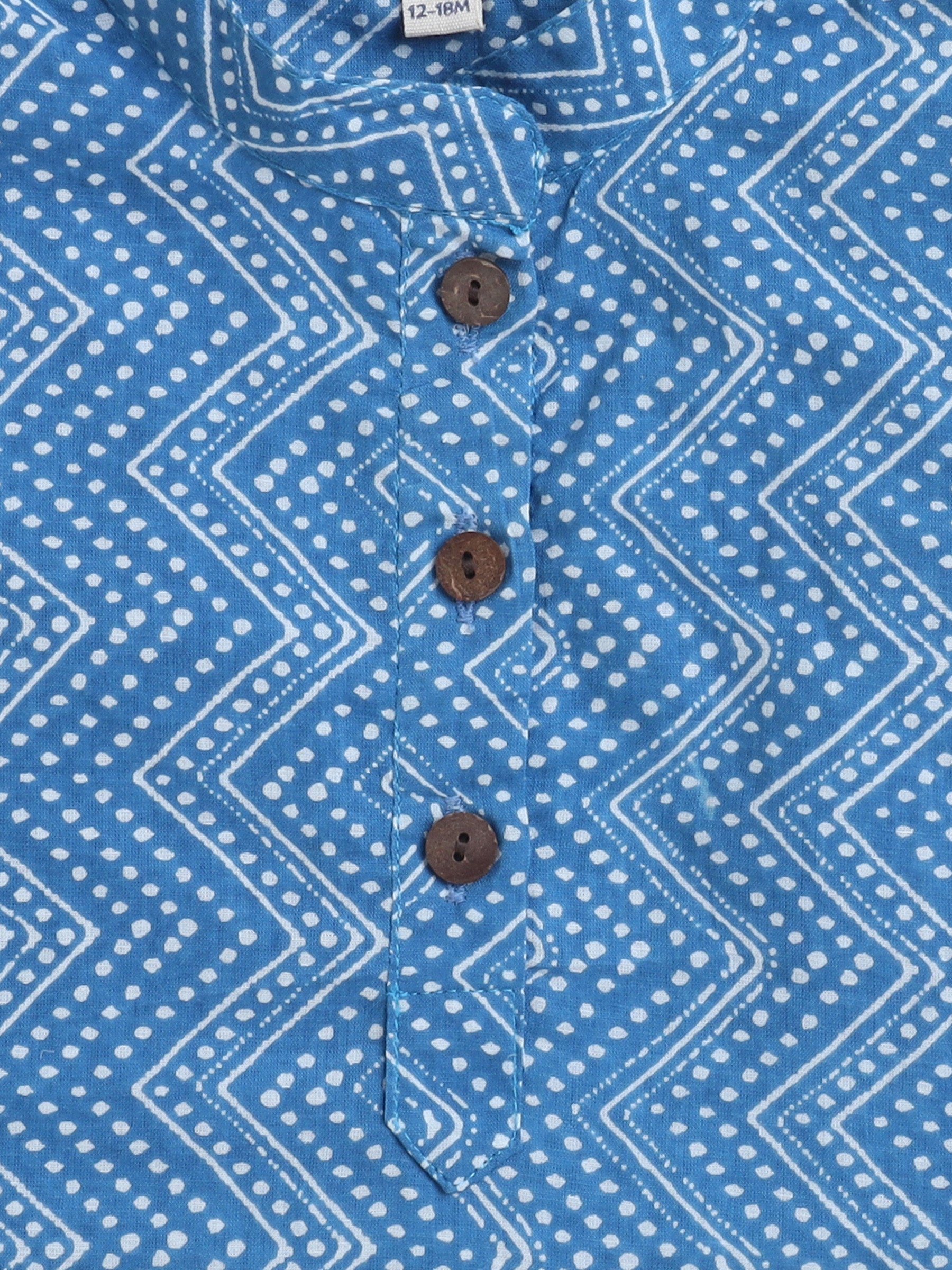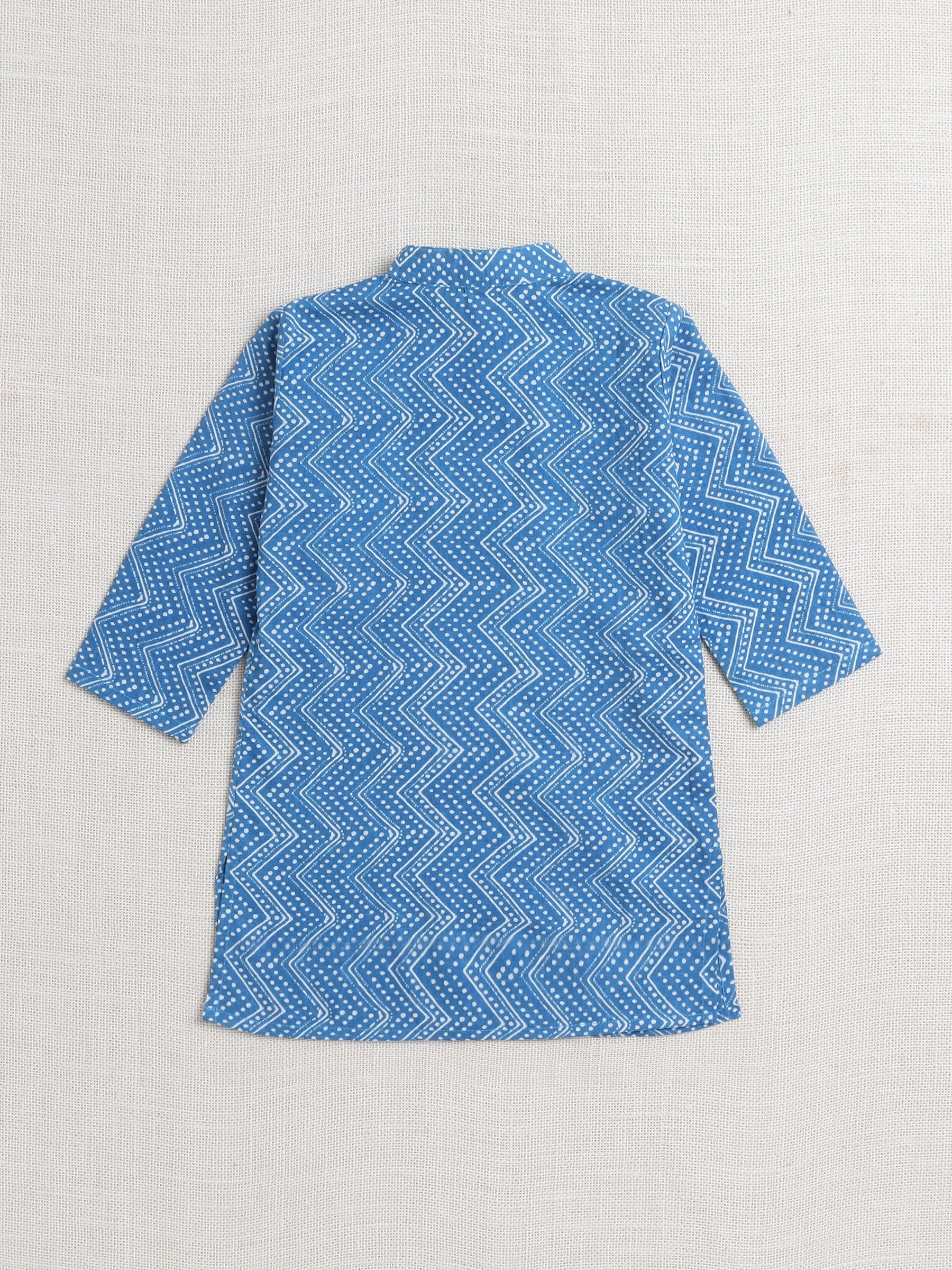 Zig Zag Printed Mandarin Collar Full Sleeves Kurta And Pant Set-Blue